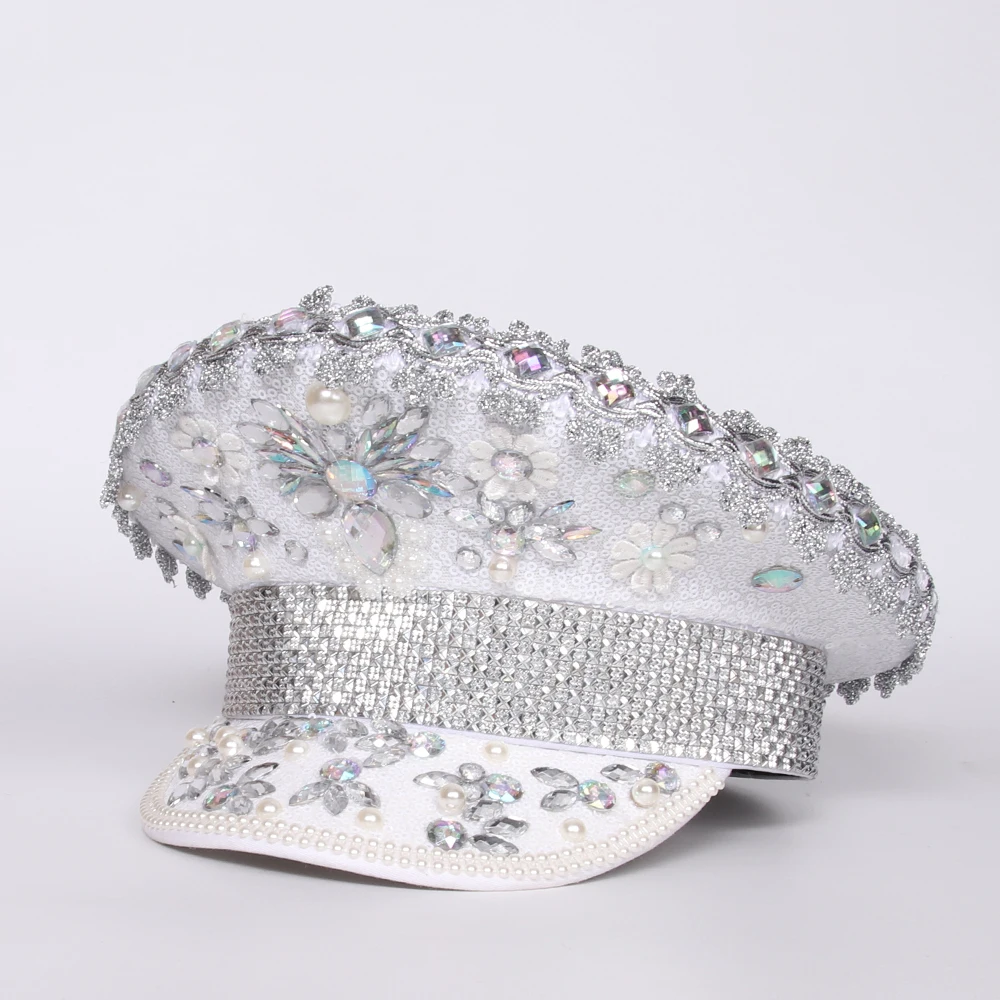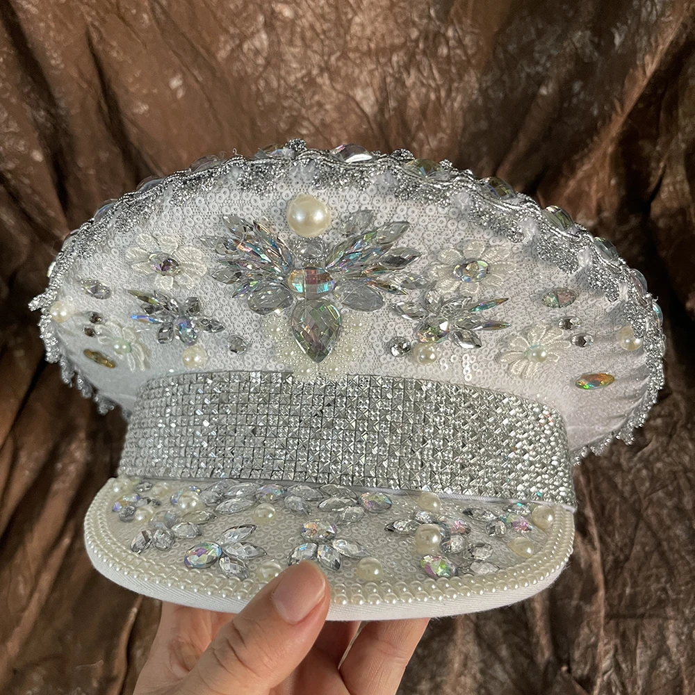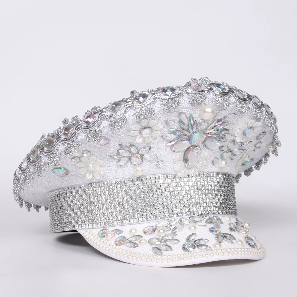Красивая белая шляпа с блестками, стиль праздничной шляпы с голографической отделкой и стразами. Персонализировано с вашим именем или возрастом спереди.