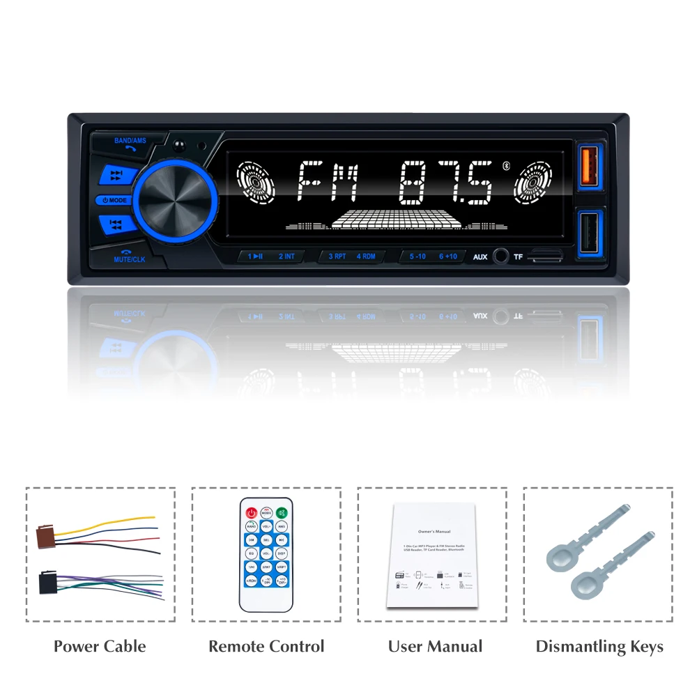 Автомобильный MP3-плеер REAKOSOUND, fm-радио-тюнер с светодиодный дисплеем, входом AUX USB, функцией зарядки, беспроводным пультом дистанционного управления