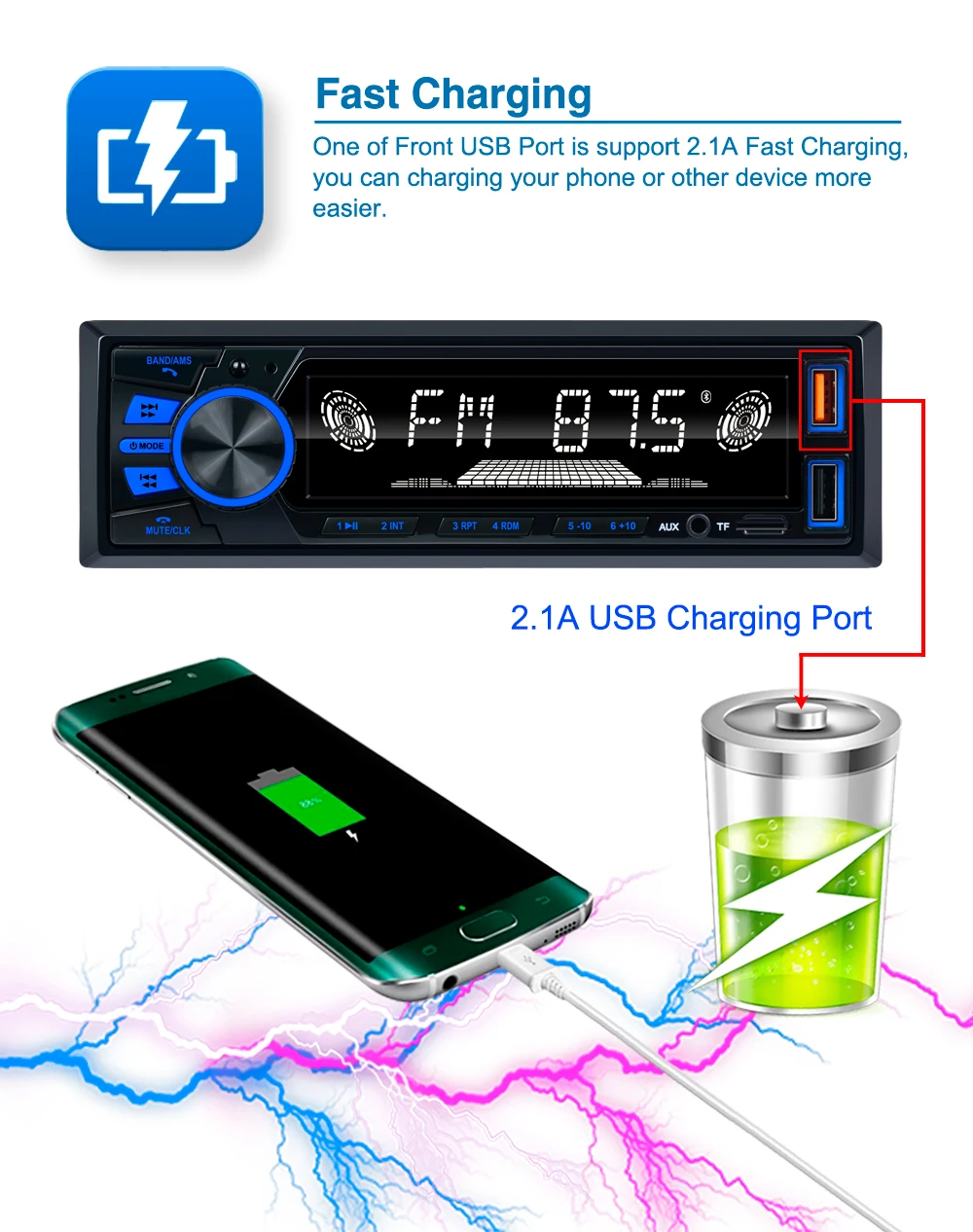 5. Стерео звуковые эффекты: Встроенный мощный IC приносит стерео звуковые эффекты, позволяя вам испытать удовольствие от вождения