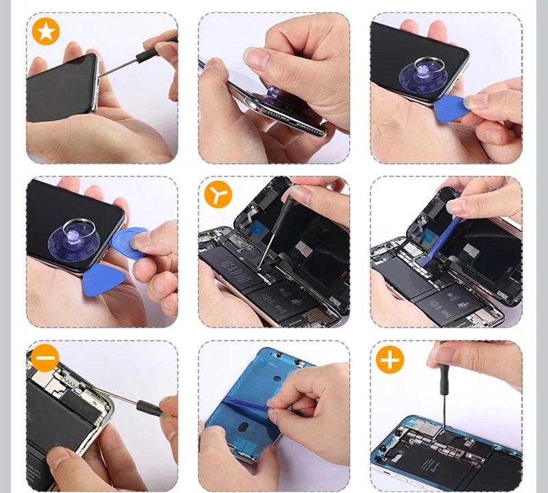 3. 1 набор инструментов для технического обслуживания. (Примечание 1: пожалуйста, поймите, что нет гарантии, что каждый телефон будет пригоден для ремонта. Примечание 2: пожалуйста, поймите, что для одного заказа будет отправлен только один набор инструментов для обслуживания.)