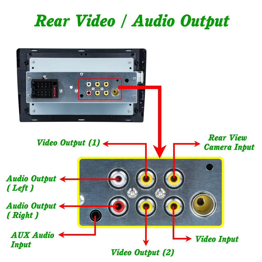 7. Этот вход Автоматически Заряжает заднюю камеру, когда транспортное средство переключается в обратную сторону и отображает изображение на экране устройства. Задняя камера продается отдельно