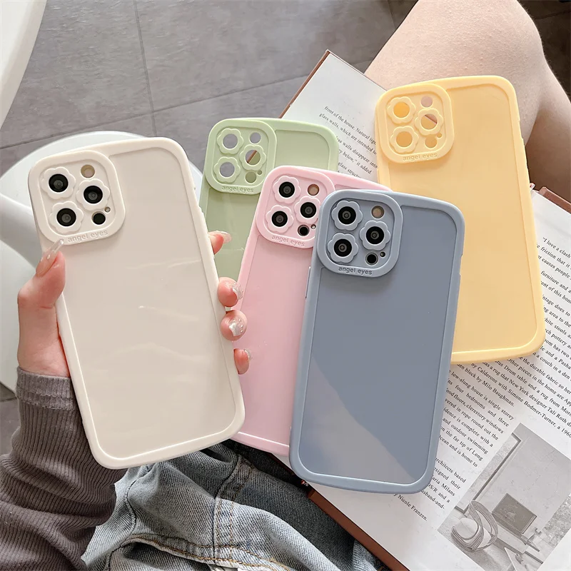 Однотонный Блестящий Мягкий силиконовый чехол для телефона iPhone 13 12 11 Pro Max X XR XS Max 7 8Plus, Защита камеры с маленькими цветами