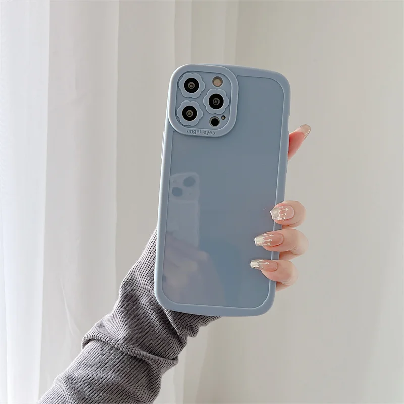 2. Однотонный Блестящий Мягкий силиконовый чехол для телефона iPhone 13 12 11 Pro Max X XR XS Max 7 8Plus, Защита камеры с маленьким цветком