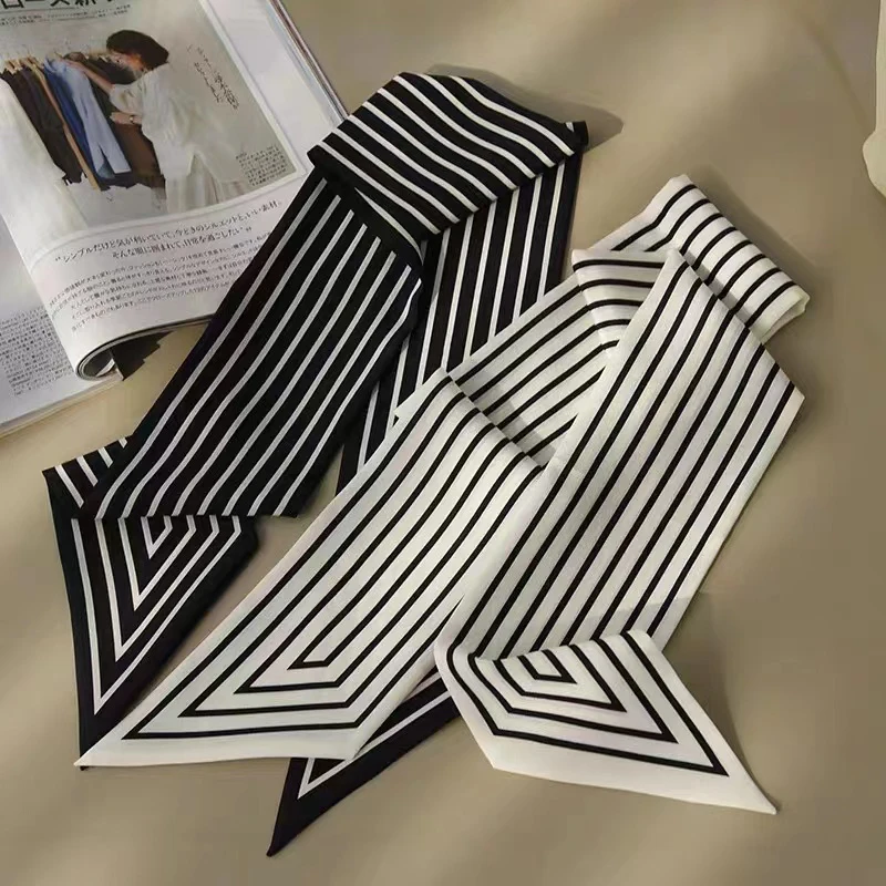 Женский простой романтичный шелковый шарф Luna & Dolphin, широкий ободок в полоску с арахисовым маслом, бандана, Сумка с лентой для волос