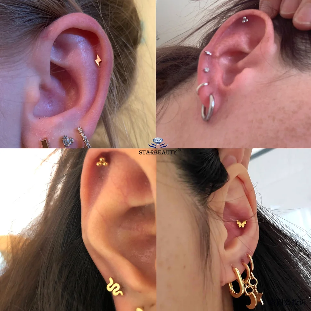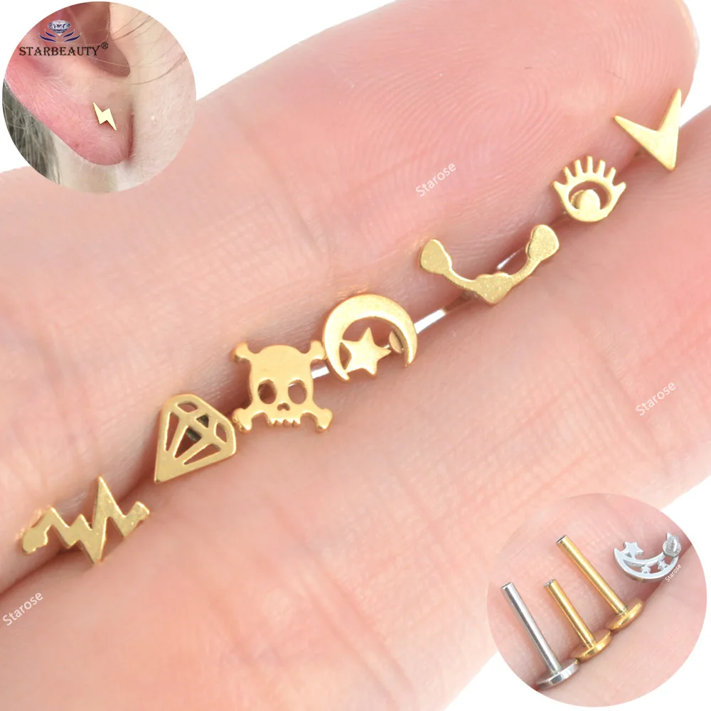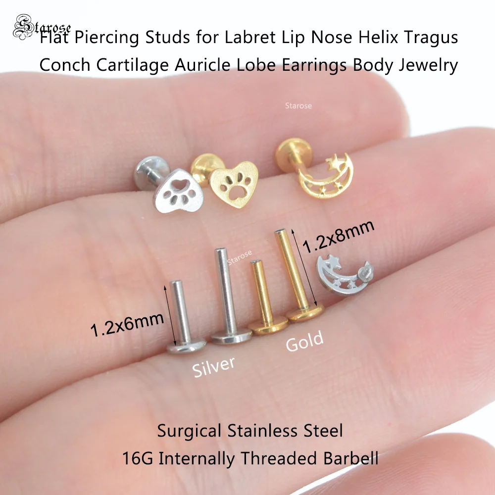 Starbeauty 2 шт./лот 16G 1.2x 6/8 мм цвет серебристый, Золотой Цвет на плоской подошве штанга гантельного типа Скорпион пирсинг Лабрет, серьги-гвоздики для губ нос кольцо из хирургической нержавеющей Сталь раковины лепестка пирсинг серьги-спирали козелка ювелирные изделия