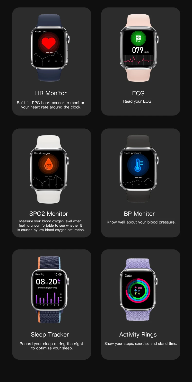 Heart rate, blood pressure, blood oxygen, ECG, sleep monitoring, health three rings