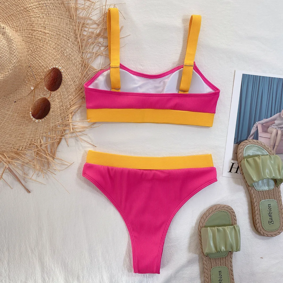 Женский раздельный бикини, летний сексуальный бандаж, дешевый купальник, бикини с высокой талией, красный стежок, Регулируемый пуш-ап, треугольное бикини