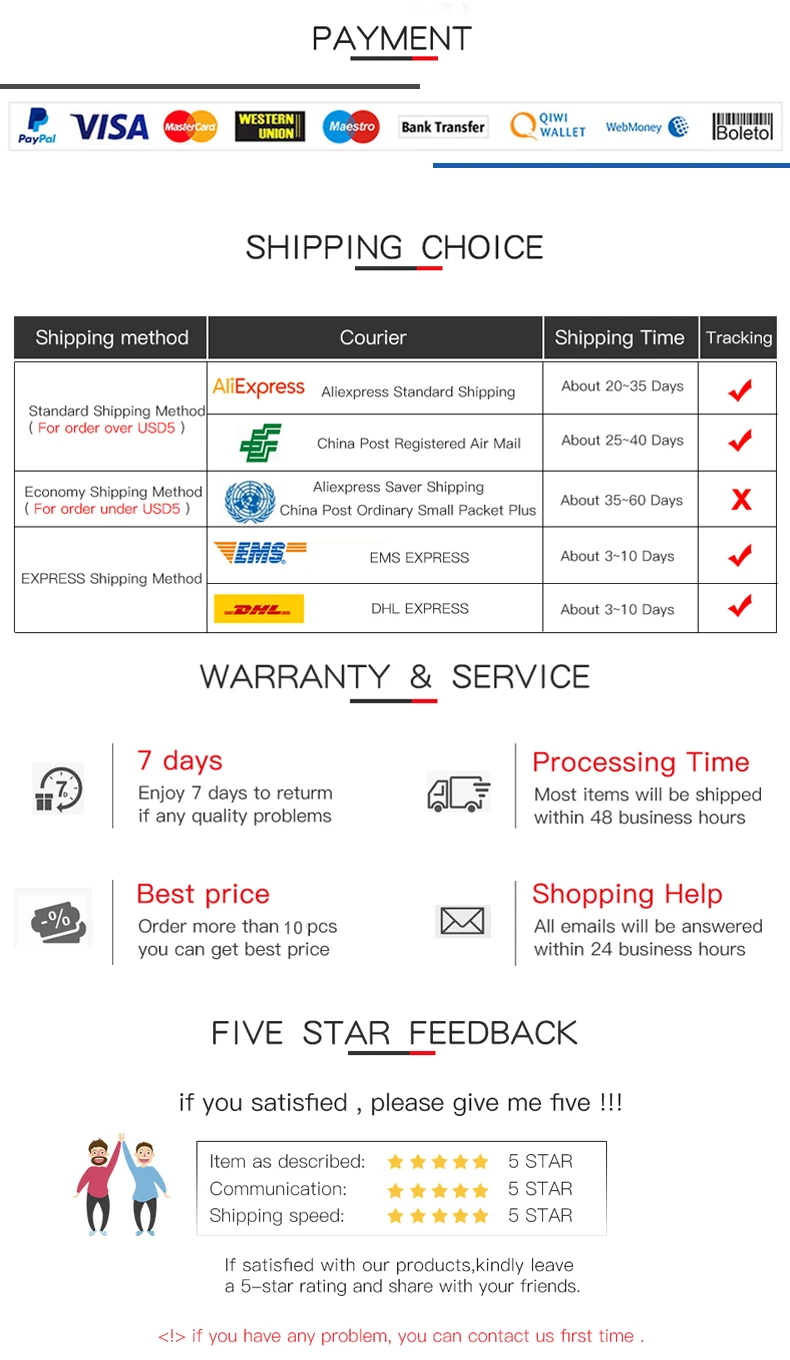 2. Из-за эффектов съемки фотографии могут не отражать истинные цвета, при условии фактического продукта. Перед размещением заказа, пожалуйста, внимательно ознакомитесь со всеми условиями. Спасибо!