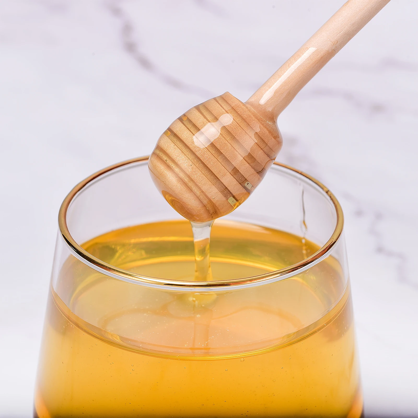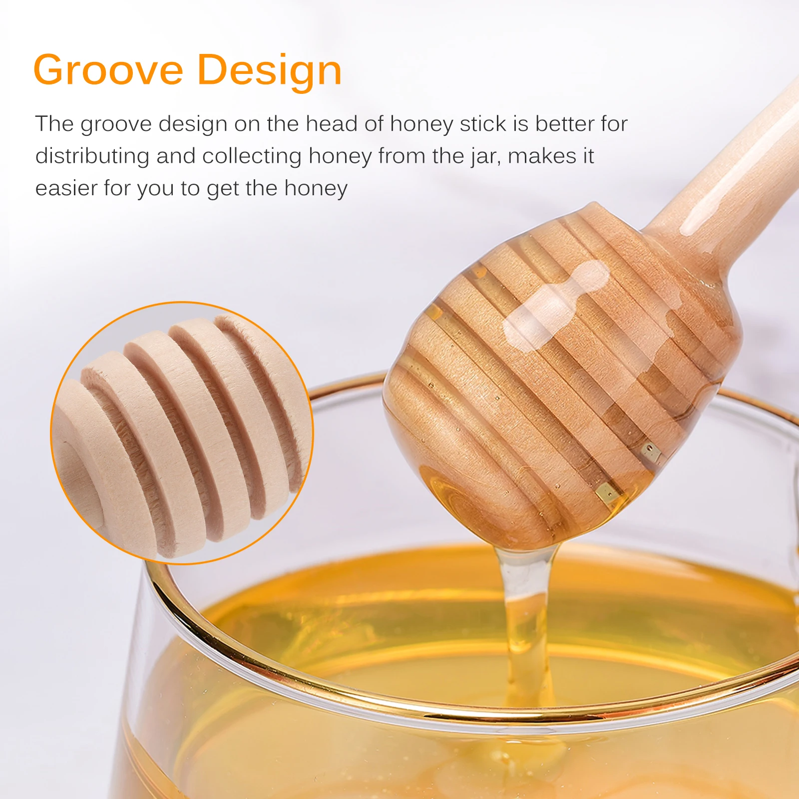 √Гладкая поверхность и пазы дизайн: Наши медовые палочки имеют гладкую поверхность, без заусенцев, легко моются и могут быть повторно использованы. Конструкция канавок позволяет меду оставаться в течение короткого времени, эффективно продлевает время для капания меда, вы можете неторопливо налить Мед на тост, печенье и сэндвич или в вашей воде, чай и овощной сок.