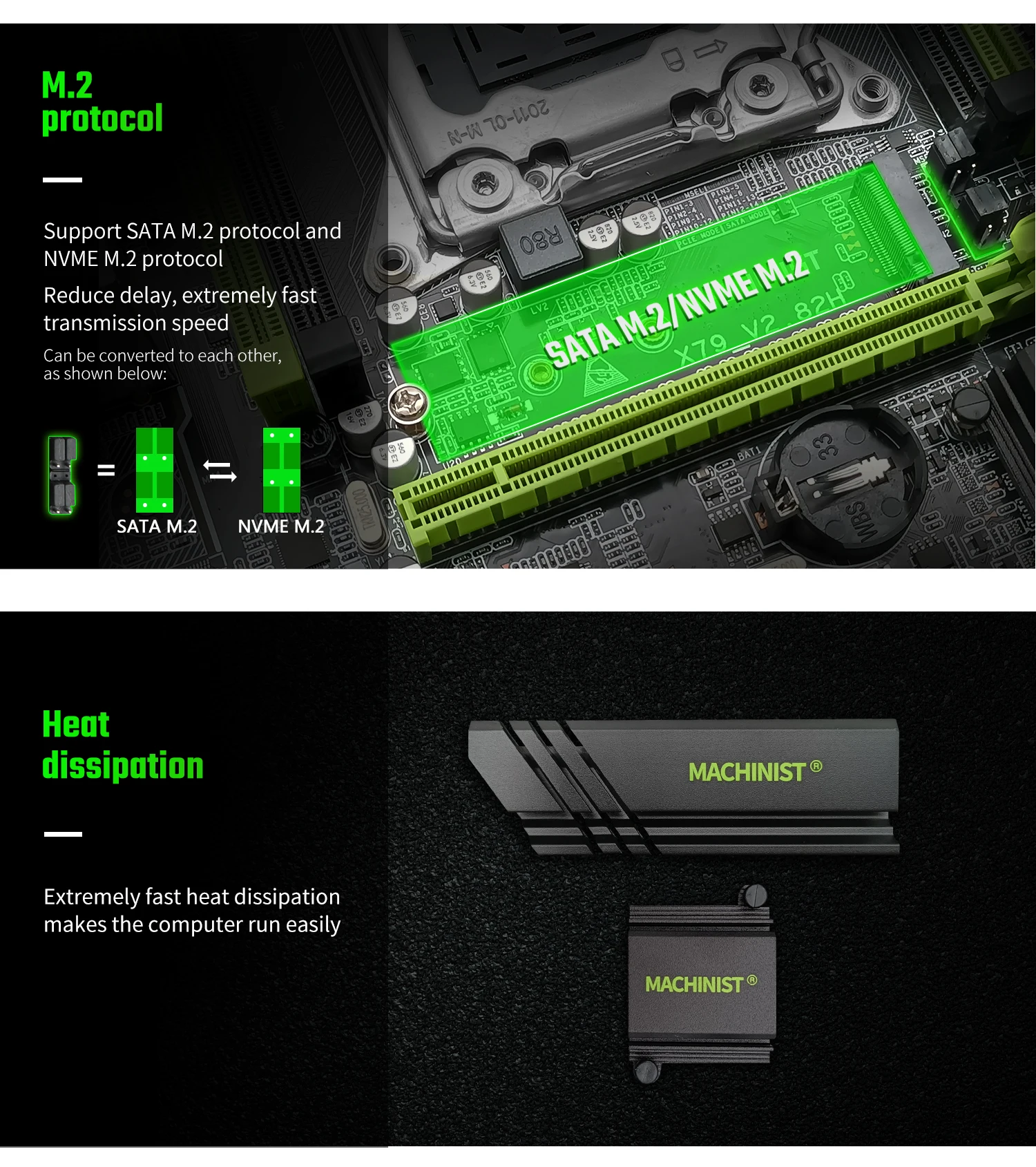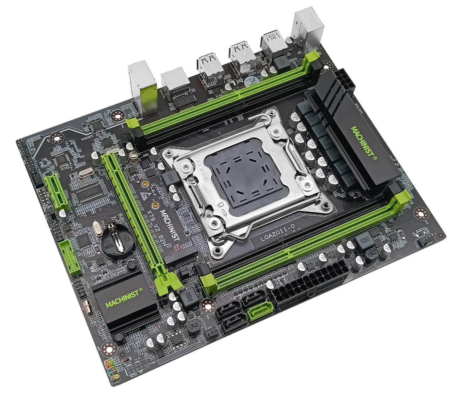 Brand: MACHINISTCondition: Brand NewCPU socket: LGA 2011Motherboard model: X79 V2.82HStructure: M-ATXChipset:Intel X79Memory slot: 4*DDR3 (four memory channels)Maximum memory supported: 4*16GB DDR3Supported memory types: The memory types support DDR3 desktop and server memory. (Please use Samsung, Kingston, SanDisk, Micron, Hynix and other international brands, other brands are incompatible)LAN port: 10/100/1000Mbps/sVideo output port: requires graphics card supportInterface: 1*RJ45/1*PS2/4*SATA2.0/4*USB2.0/2*USB3.0/1*PCI-E x16/1*PCI-E x1/1*NVME/NGFF M.2 interface;Motherboard size: 235*185mmMotherboard weight (including packaging): about 0.9kg.MACHINIST Warehouse Department Statement