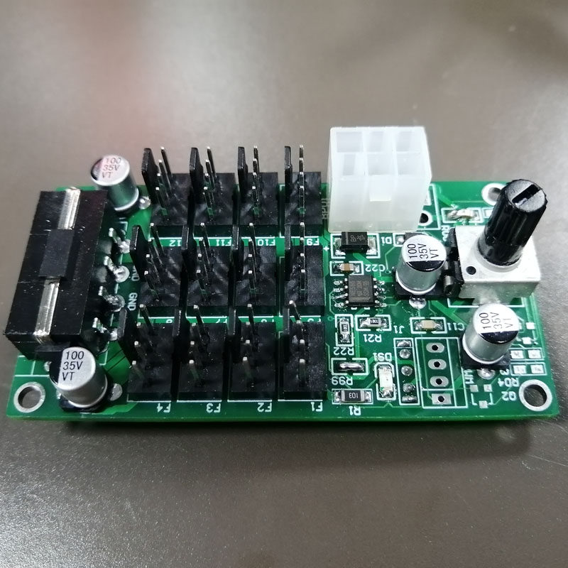 Выход мощность: до 12 Охлаждающие вентиляторы с 4-провод PWM fan регулирование скорости, интерфейс является обычным (GND/12V/скорости/ШИМ) линии последовательности, один вентилятор может обеспечить ток 5А и мощность 60 Вт, а общая мощность блока питания 6P может достигать 320 Вт