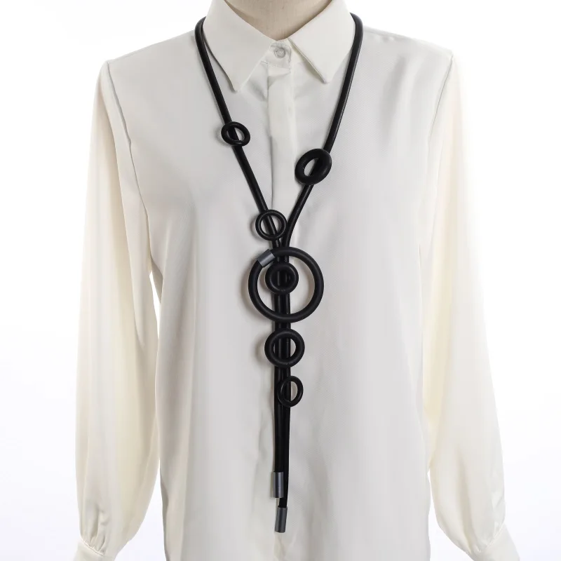 Новое длинное кожаное ожерелье для женщин ручной работы в богемном стиле, черные цепочки для свитера, Винтажные Ювелирные изделия, аксессуары для одежды, свадебный подарок