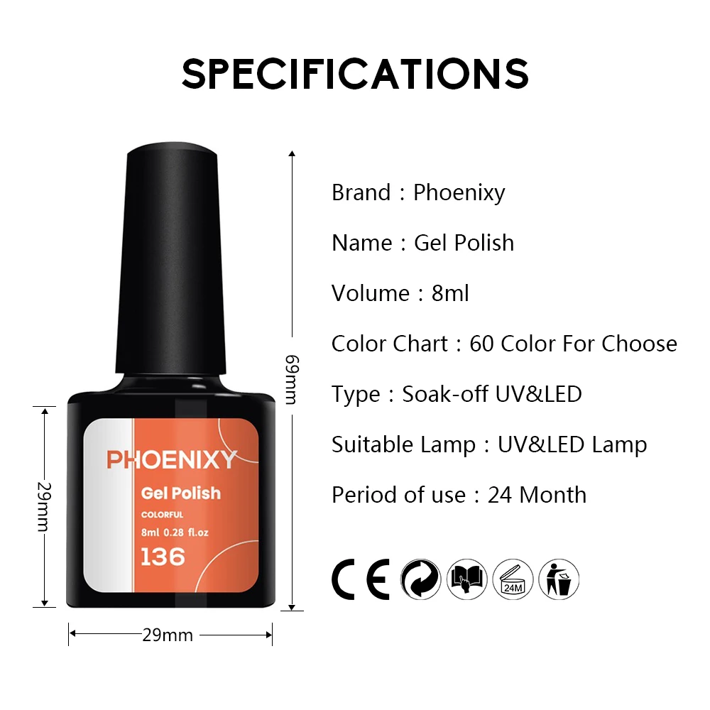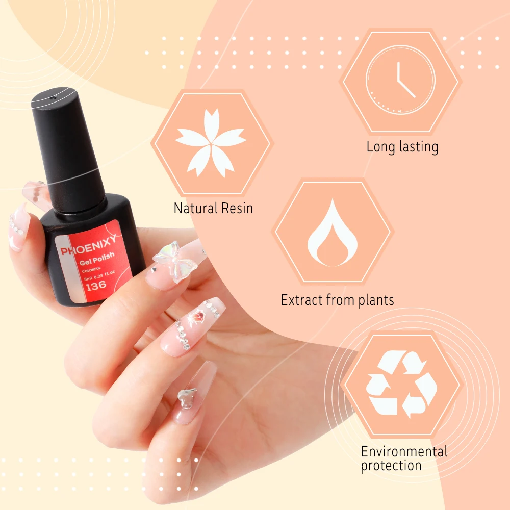 Easy to apply, with proper application, Phoenixy gel polish can last up more than 2 weeks, not peeling off easily.