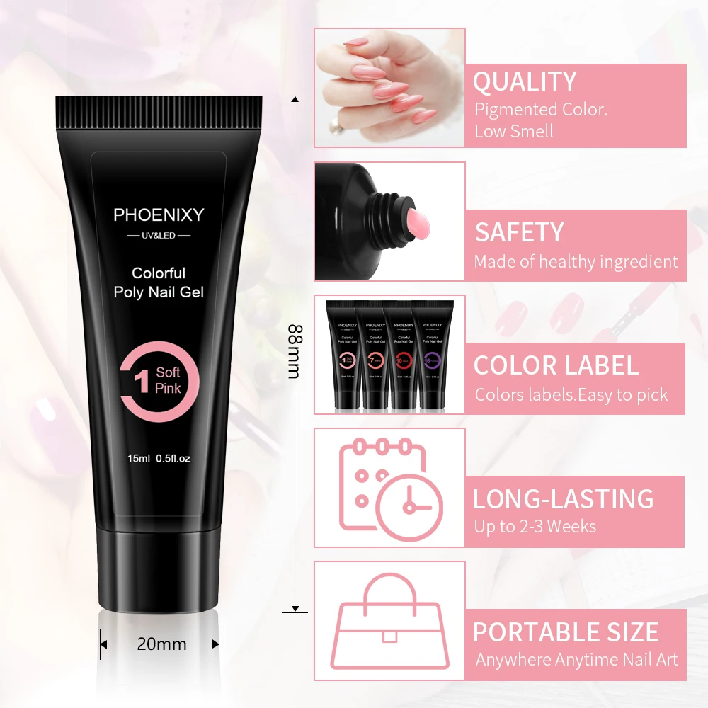 High-quality, professional poly nail gel allows you to enjoy the nail art fun at home with your family, friends or for nail salon use.