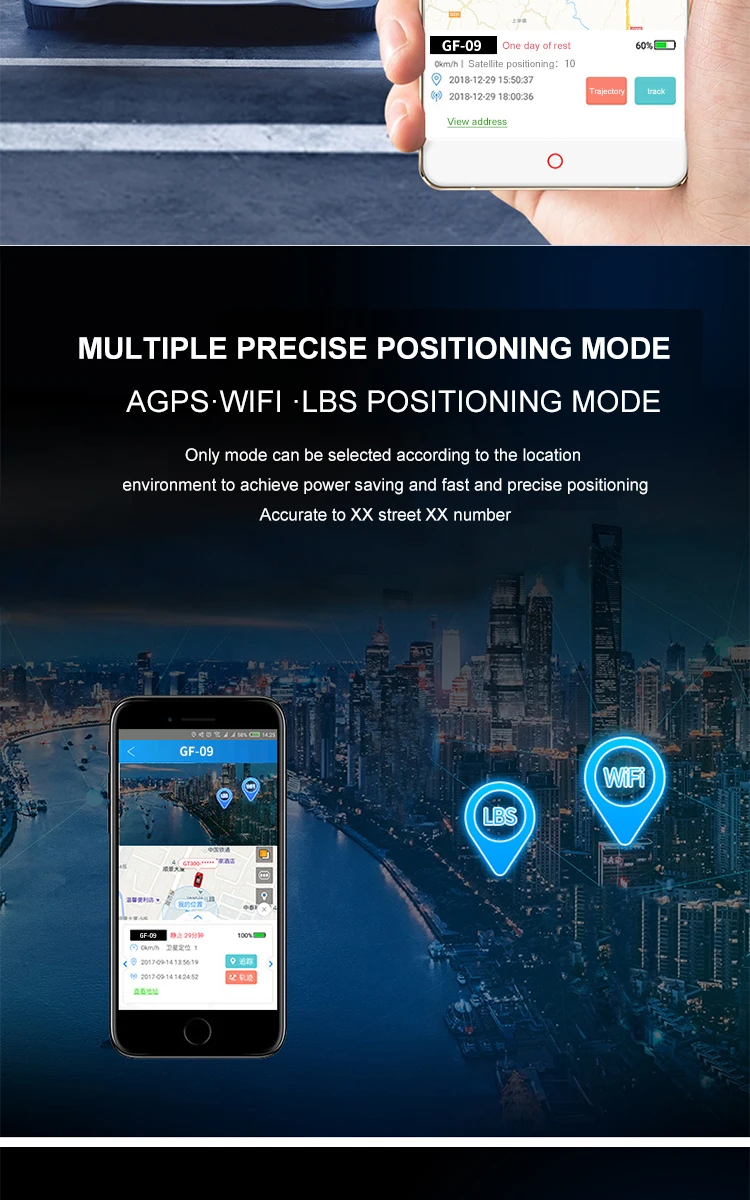 Функции: удаленная запись, запись голосового управления, GPS высокой четкости, WIFI, LBS и GPS позиционирование, отслеживание в реальном времени, история трека, электронный забор, удаленный выключатель, AAP, компьютерный терминал, управление сообщениями, SOS для помощи.