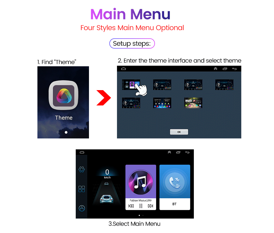 >Support BT FunctionPhonebook with name search function and caller name display directly.Incoming calls, dialed calls, missed callswith caller ID.Support BT music streaming.![]()