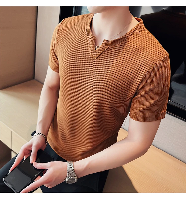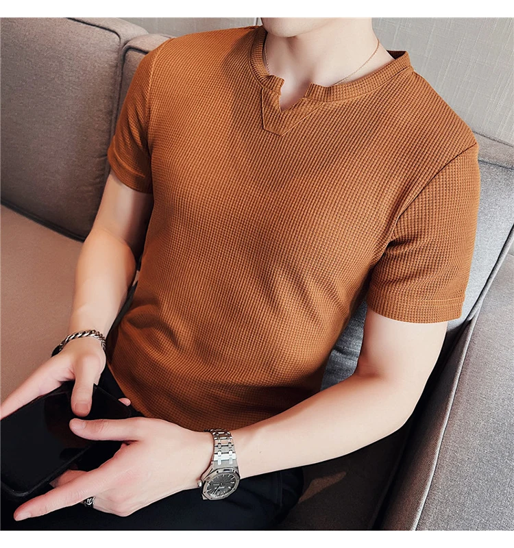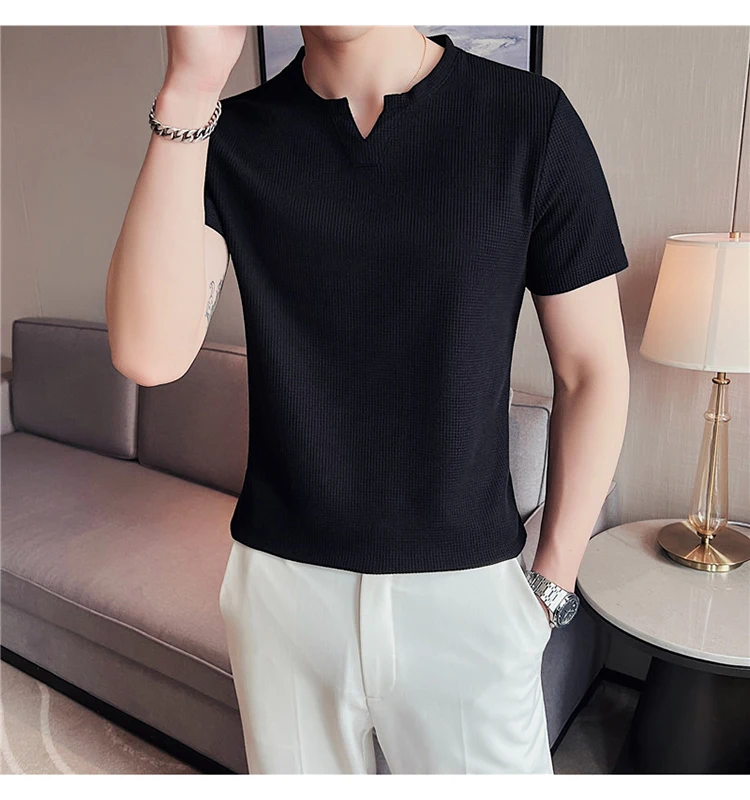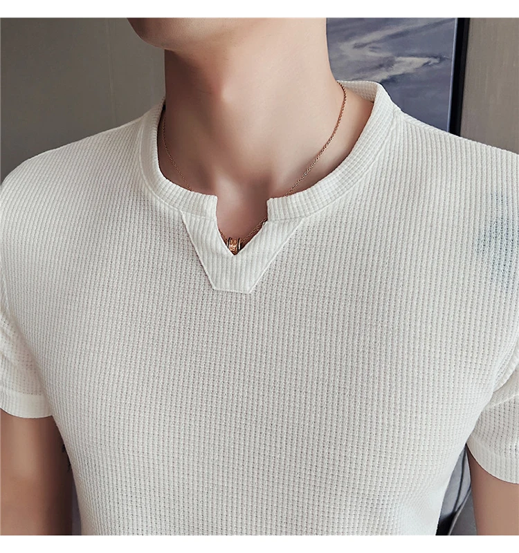 Новые летние Вафельные Мужские футболки белая Элегантная стильная мужская одежда ретро джентльменская Трикотажная блуза мужские топы в британском стиле черный