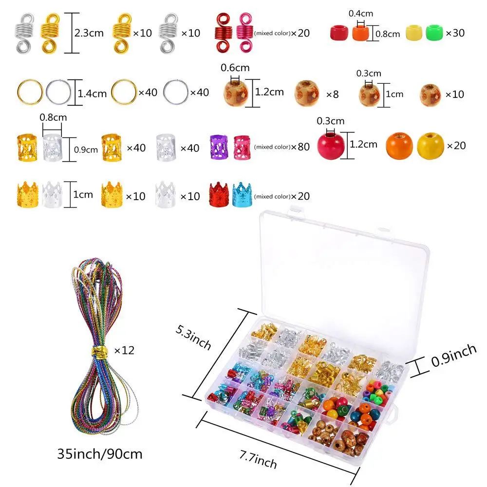 Кольца для косичек, обручи для волос, зажимы для волос, деревянные бусины и цветной металлический шнур