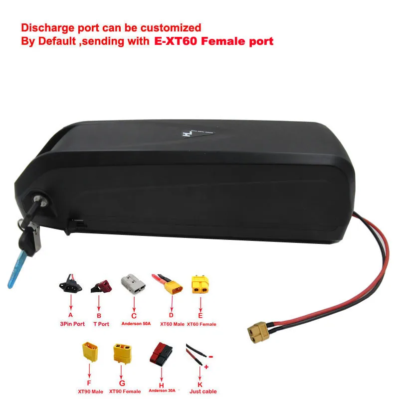 Ячейки: 3,6 V 3500 мА/ч, 35E 18650 3C мощный клеткиBMS: 20 Ампер непрерывный/60 ампер максимумПодходящий Двигатель: макс. 52 в 800 ВтТок зарядки: 2-5AНапряжение отключения заряда: 58,8 вПорт зарядки: XLR 1 + 2-Напряжение отключения разряда: 42 +/- 1 вТемпература разряда: от-10 до 65 °CПорт разрядки: XT60 Female (можно настроить)Температура зарядки: от 0 до 45 °CРазмеры: 360*110*90 ммСрок службы: ≥ 80% емкости после 800 циклов.