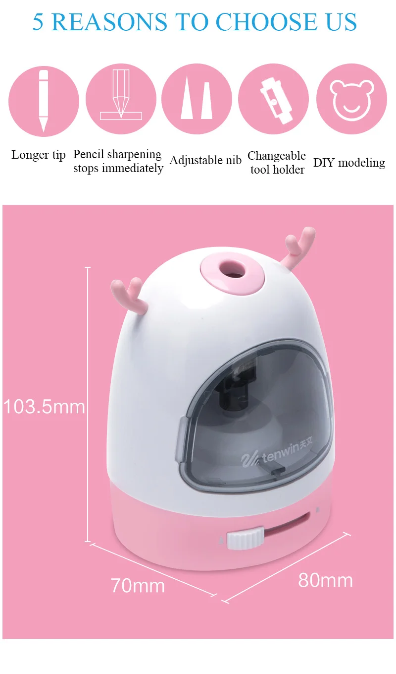 TENWIN 5 цветов электрическая точилка для карандашей с героями мультфильмов механические Точилки автоматические школьные принадлежности Детские милые канцелярские принадлежности