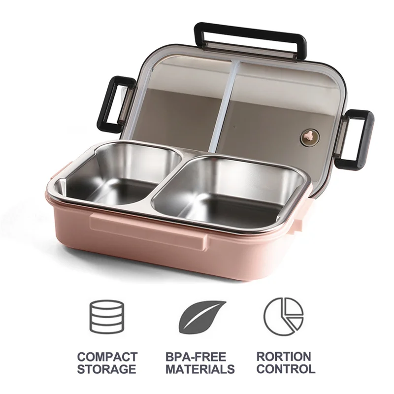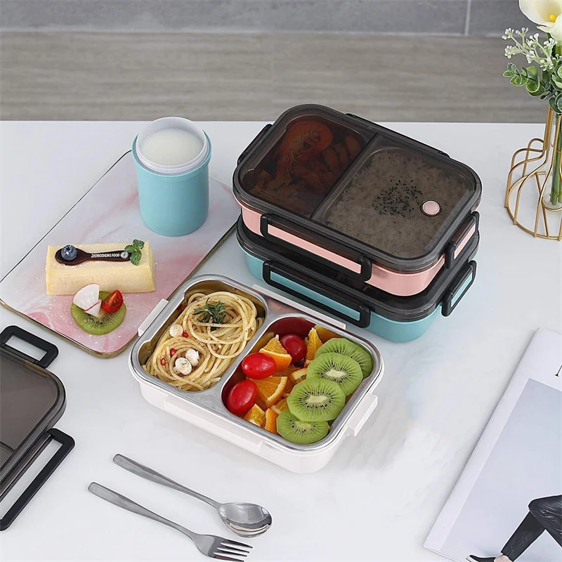 2 с отделениями бенто Ланч-бокс с изолированной сумкой для обеда и портативной утварью, контейнеры для еды из нержавеющей стали для детей взрослых мужчин и женщин