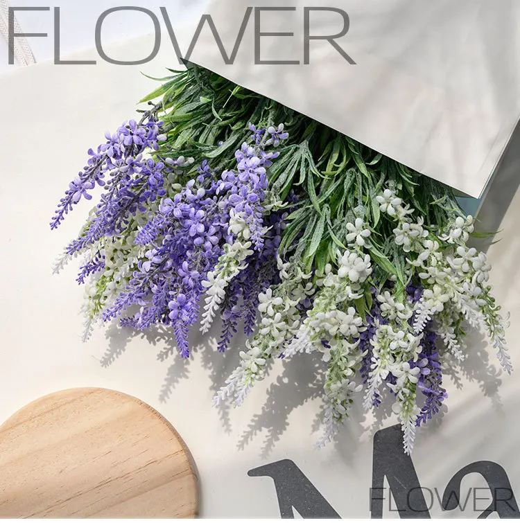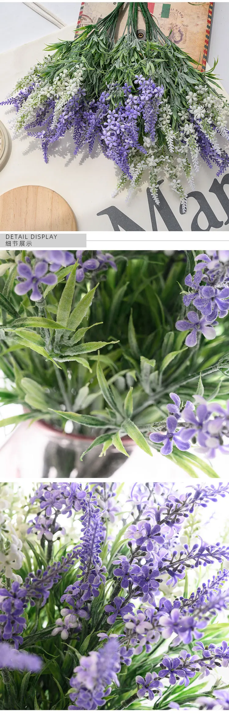 Искусственные цветы флокированные пластиковые Лавандовые Букет Свадебные поддельные растения Цветочная композиция Дом Сад макет офис ваза декор