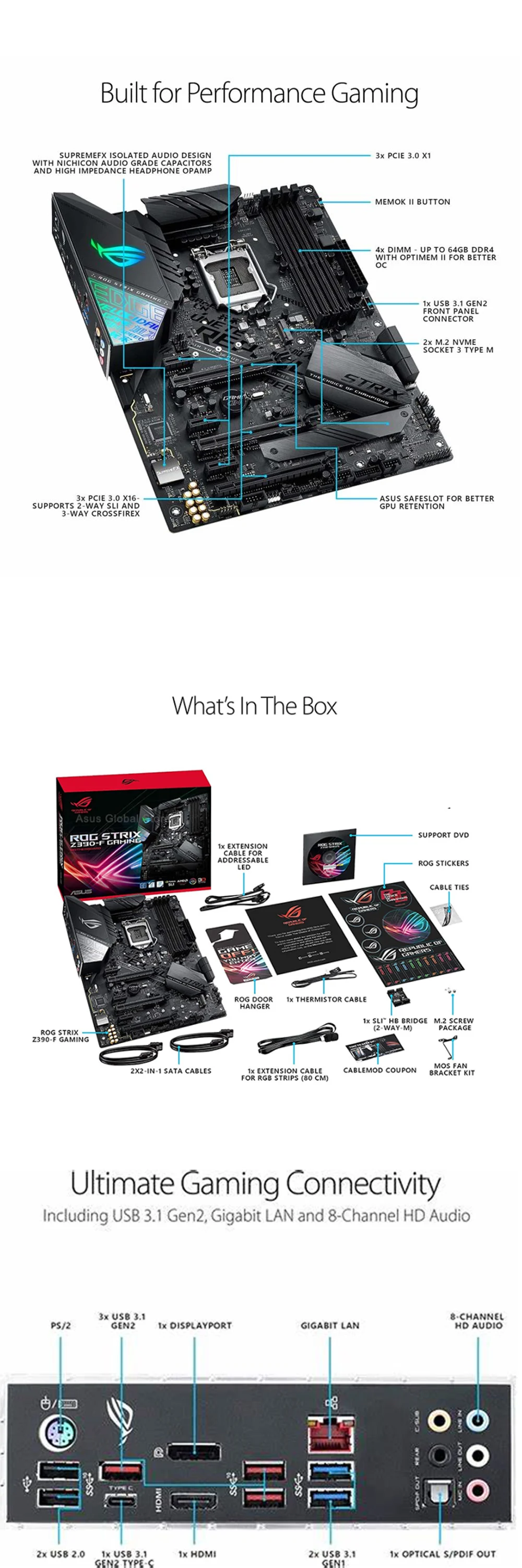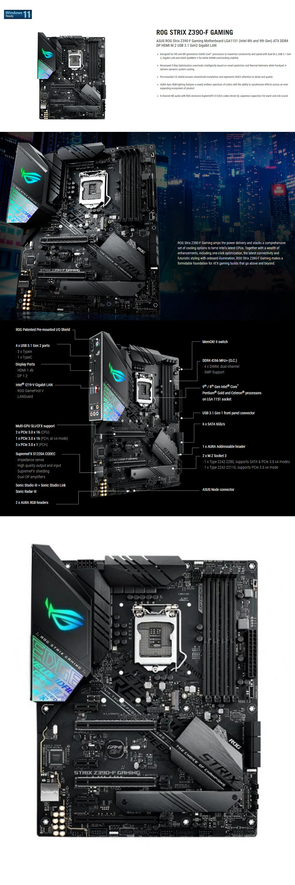 LGA 1151 ASUS ROG STRIX Z390-F GAMING DDR4 4366OC PCI-E 3 0 USB3.1 Gen 2 128 ГБ Z390 материнская плата по стандарту ATX