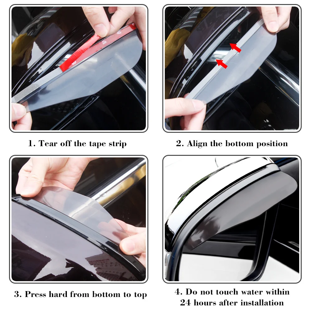 Тщательно очистите зеркало заднего вида внутри, разорванный пластиковый защитный лист на корпусе, Шторм перестанет сгибаться к кривизне зеркала и наклеить, пожалуйста, плотно прижмите после определенного периода времени, чтобы обеспечить твердый пресс, не стирайте в течение 24 часов.
