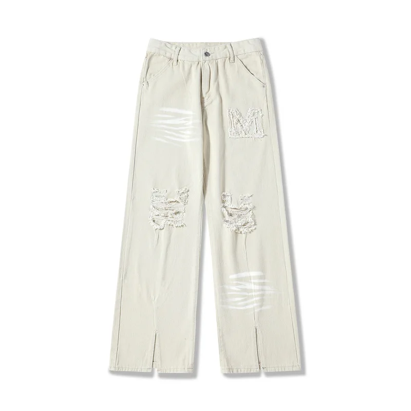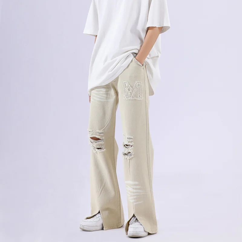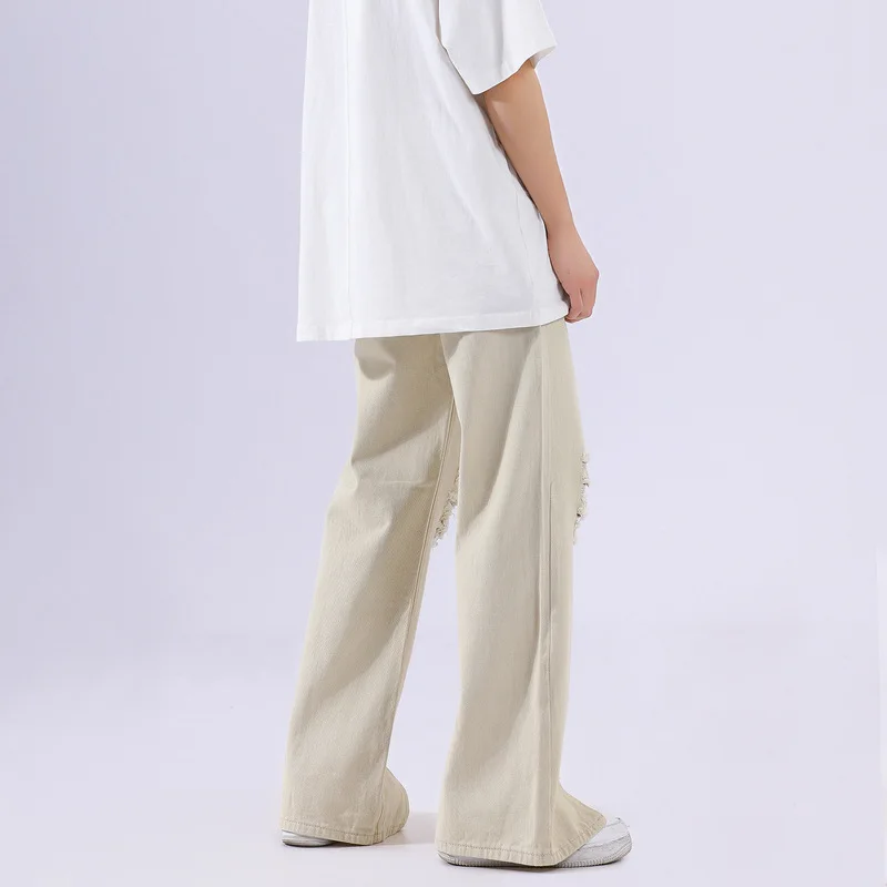 2022 рваные повседневные джинсовые брюки в стиле ретро с кошачьими усами для мужчин и женщин, прямые свободные джинсы с высокой талией