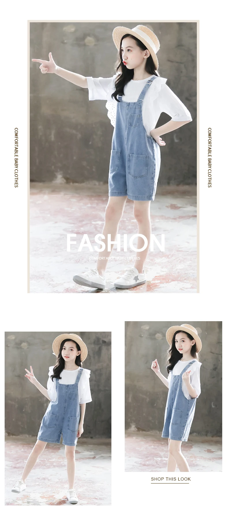 Комплект летней одежды для маленьких девочек белая кружевная футболка длинные