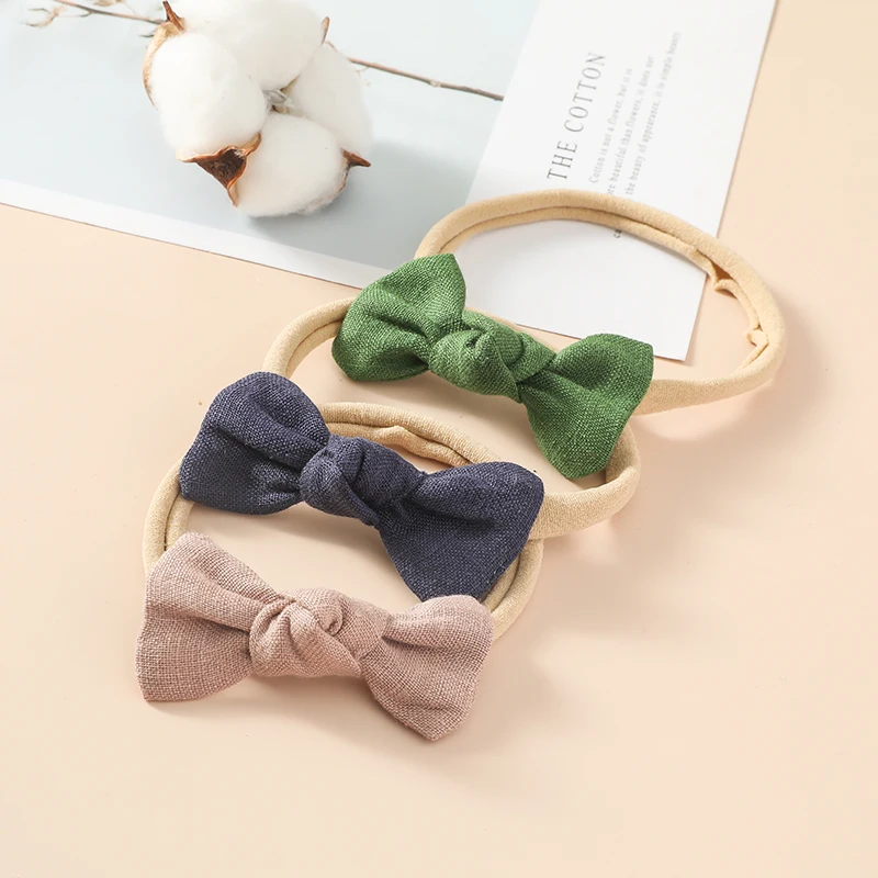 2.5 Inches Bows Headbands Baby Girl Elastic Band For Children Cotton Linen Hair Accessories Ins Infant Newborn Hairband Cute