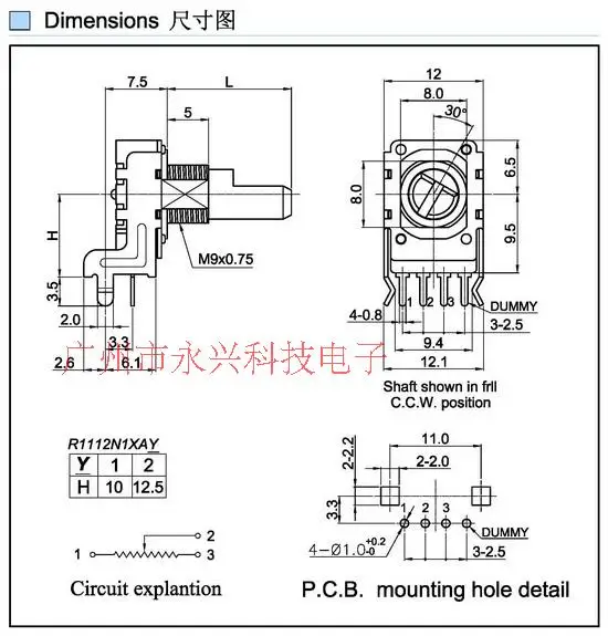 RK11 型 单排 4 脚 单联电位器 B10K 轴长 13 мм B103 功放音量电位器
