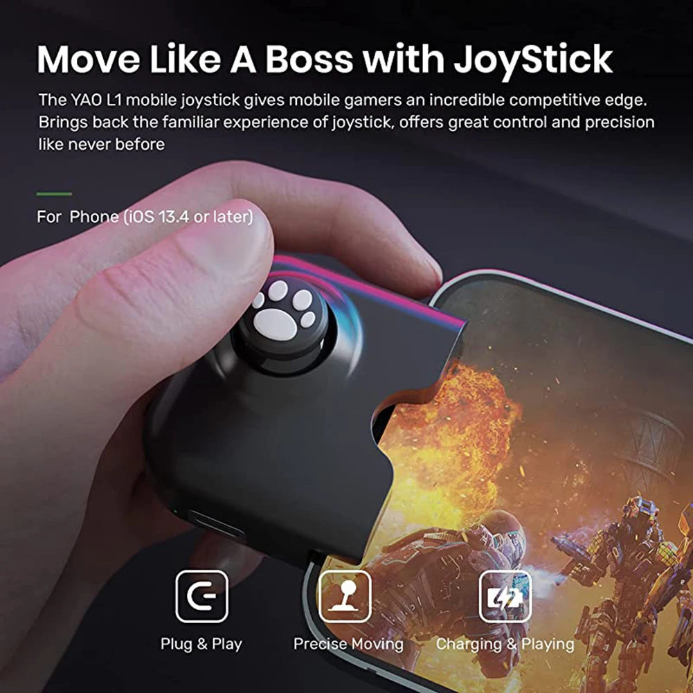 Характеристика: Только один аналоговый дизайн для ваших игровых движений. Подключи и работай, точное позиционирование. Для iPhone и для iPad gaming. Приложение не требуется. Сверхнизкое энергопотребление 3 мАч/час. Спецификация: Подходящая платформа: для iPhone, для iPad Размер изделия: 47*43*23 мм/1,85*1,69*0,91" Вес изделия: 52 г Вес брутто: 100 г Примечание: Возможны незначительные отклонения в размере из-за ручного измерения, различных методов измерения и инструментов. Изображение может не отражать фактический цвет изделия из-за различного фотографирования светильник, угол и дисплей монитора.