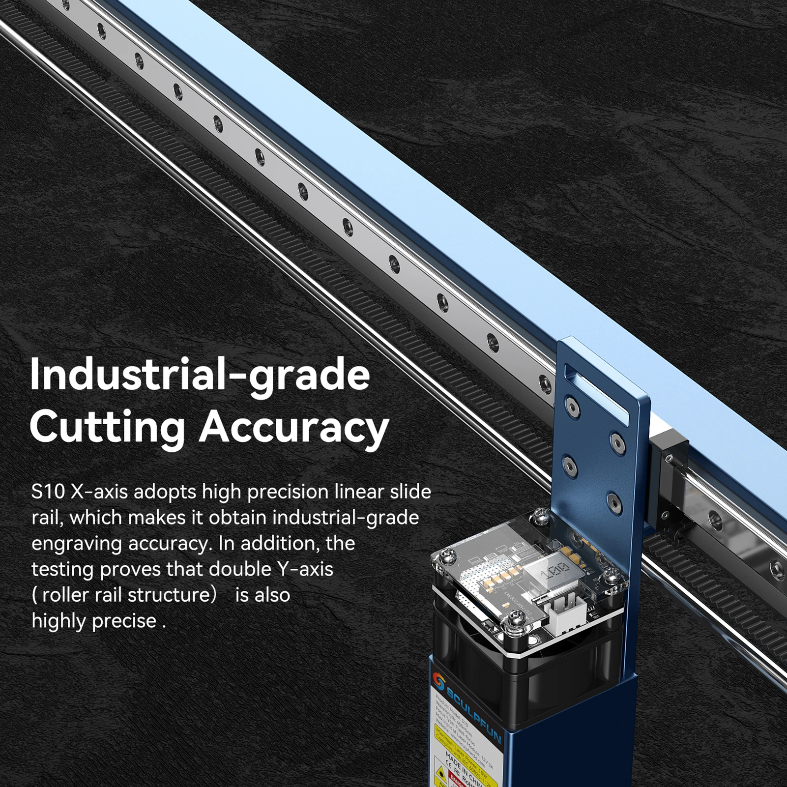 Промышленная точность резки:S10 принимает промышленные высокоточные линейные рельсы X-axis, что делает его получить точность гравировки промышленного класса. При сравнении небольших гравировальных деталей, S10 не имеет волновых линий, которые появляются другие обычные гравировальные машины.