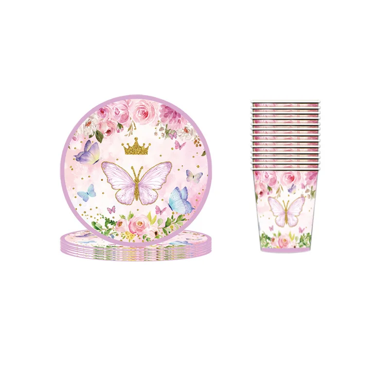 Чернильная Цветочная бабочка тематическая вечеринка на день рождения детский набор посуды для ванны бумажный поднос чашка бумажное полотенце флаг тянущий нож, вилка и ложка