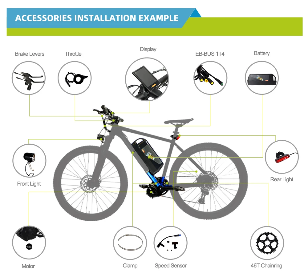 ◆【All части inclusive】:Новейшая модель BAFANG M325 M625 500 Вт/750 Вт/1000 Вт комплект двигателя среднего привода с батареей 19Ah, дисплеем DPC181, фарой, задним фонарем, датчиком скорости и т. д. все необходимые монтажные аксессуары включены.