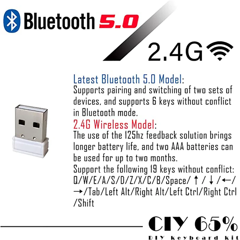 CIY GK68 двойной режим 65% клавиатура DIY Kit,Bluetooth 5,0G 2,4G беспроводной, Swappable MX Переключатель 5Pin/3Pin,ABS корпус