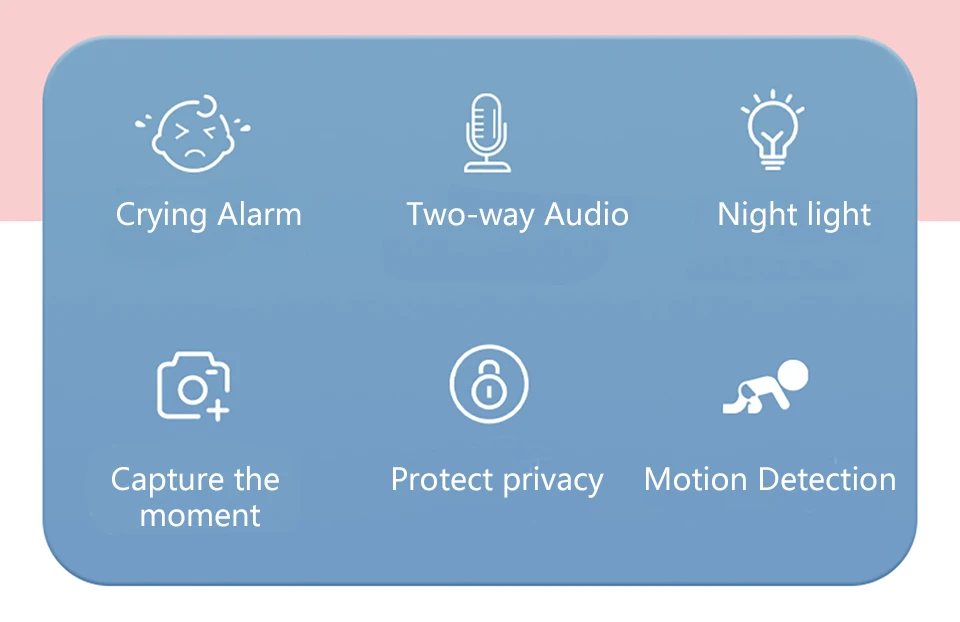 Когда ваш ребенок будет плакать, жар, плеваться, мочить кровать или пинать одеяло, сигнал тревоги может быть нажат на мобильный телефон с помощью плача зондирования, обнаружения движения. Когда не рядом, вы можете поговорить с вашим ребенком двухсторонним аудио.