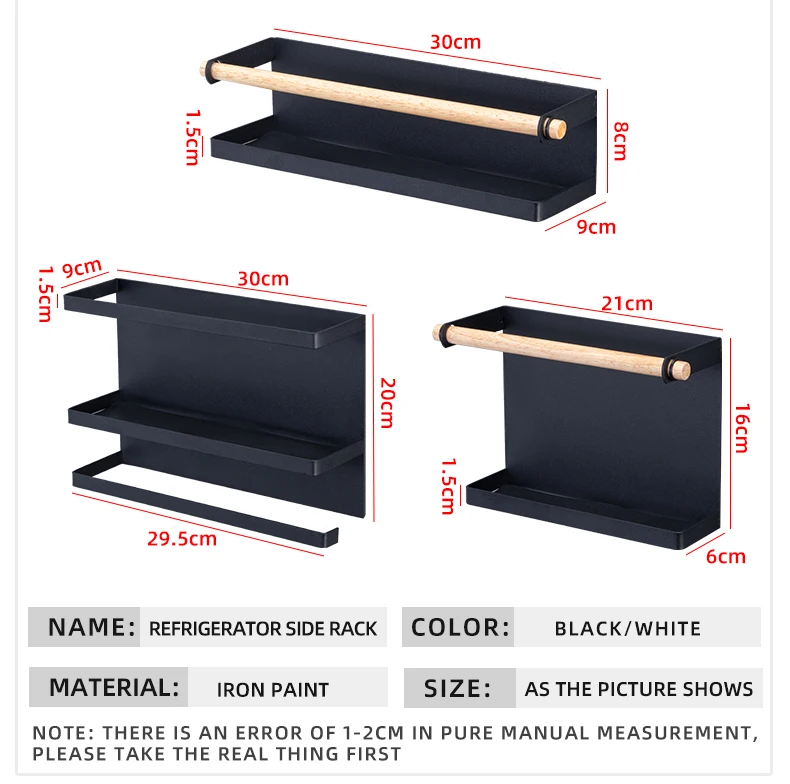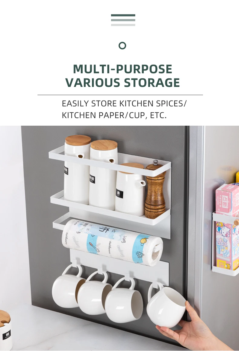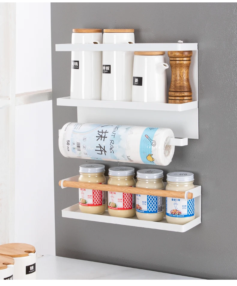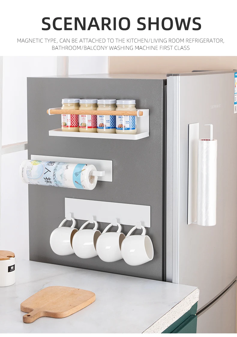 Магнитные полки для холодильника, стойка для специй, многофункциональная черно-белая металлическая Бумага для полотенец, держатель для стиральной машины, кухонные принадлежности для хранения