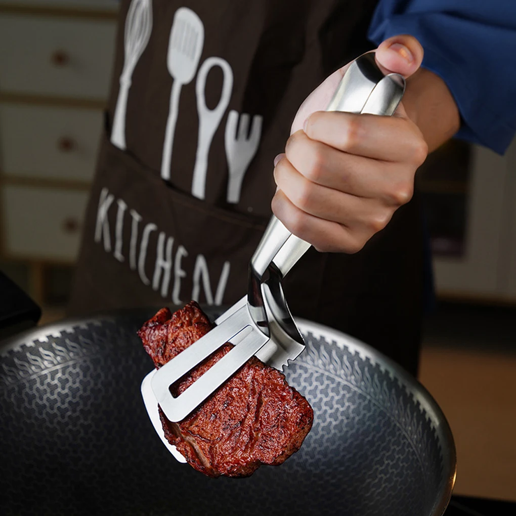 Многоразовое использование: щипцы для стейка имеют ряд зубьев пилы, чтобы нарезать еду, а также поднимать, поворачивать и переносить всю рыбу, гамбургеры, яйца, блины, пирожные и многое другое.