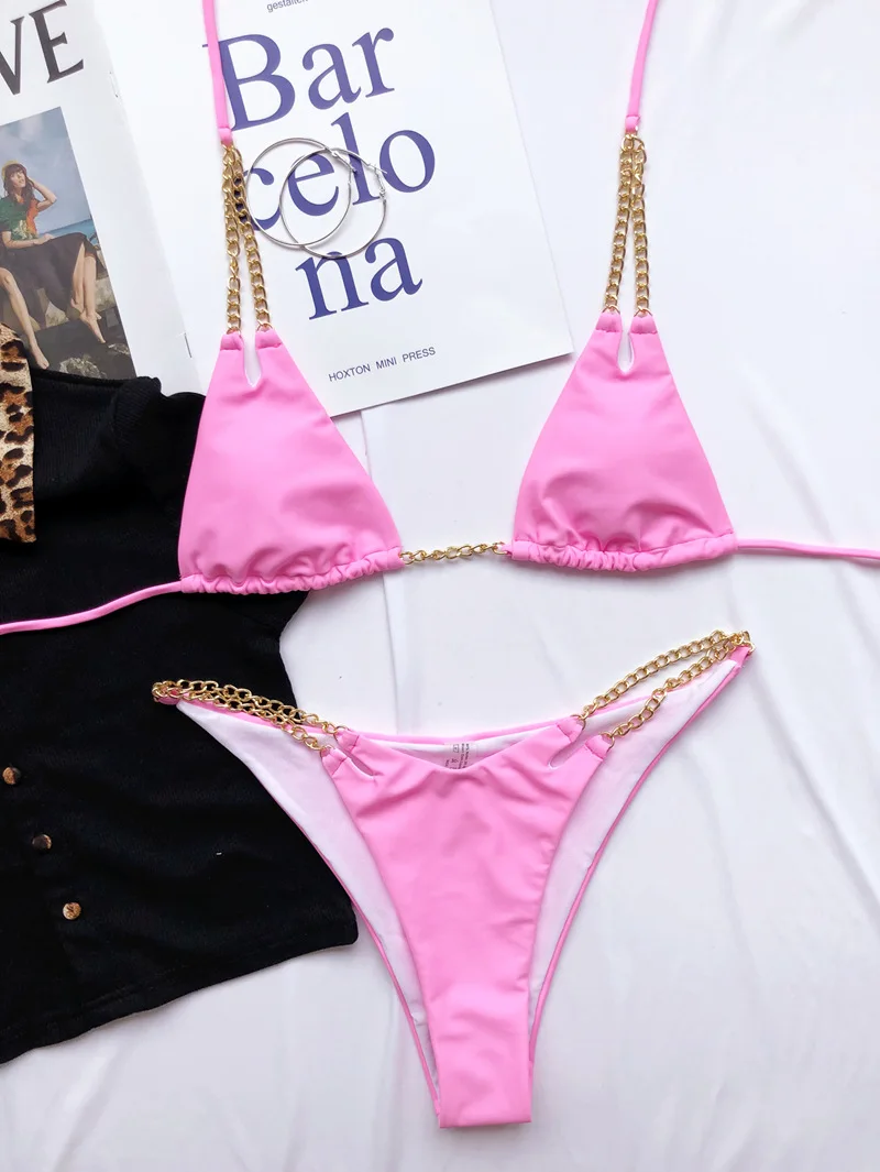 Women Split Bikini Summer Sexy Bandage Cheap Swimsuit Pit Bar Biquini High Waist Red Stitch Adjustable Push Up Triangle Bikini