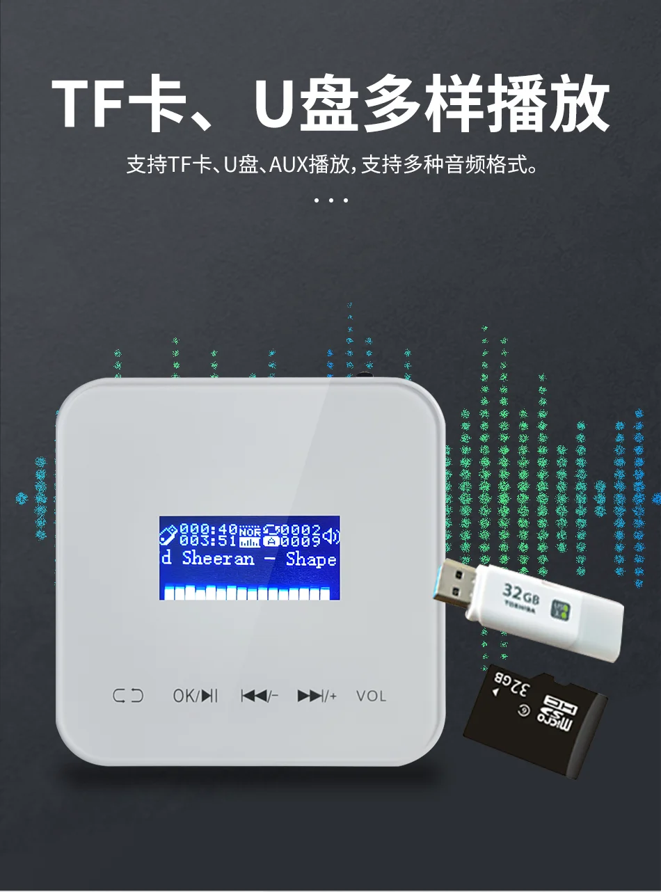 5. Функция u-диска: Подключите u-диск (поддержка 32 Гб) для чтения музыки через usb-интерфейс и Легко Настройте семейное фоновое музыкальное пространство.