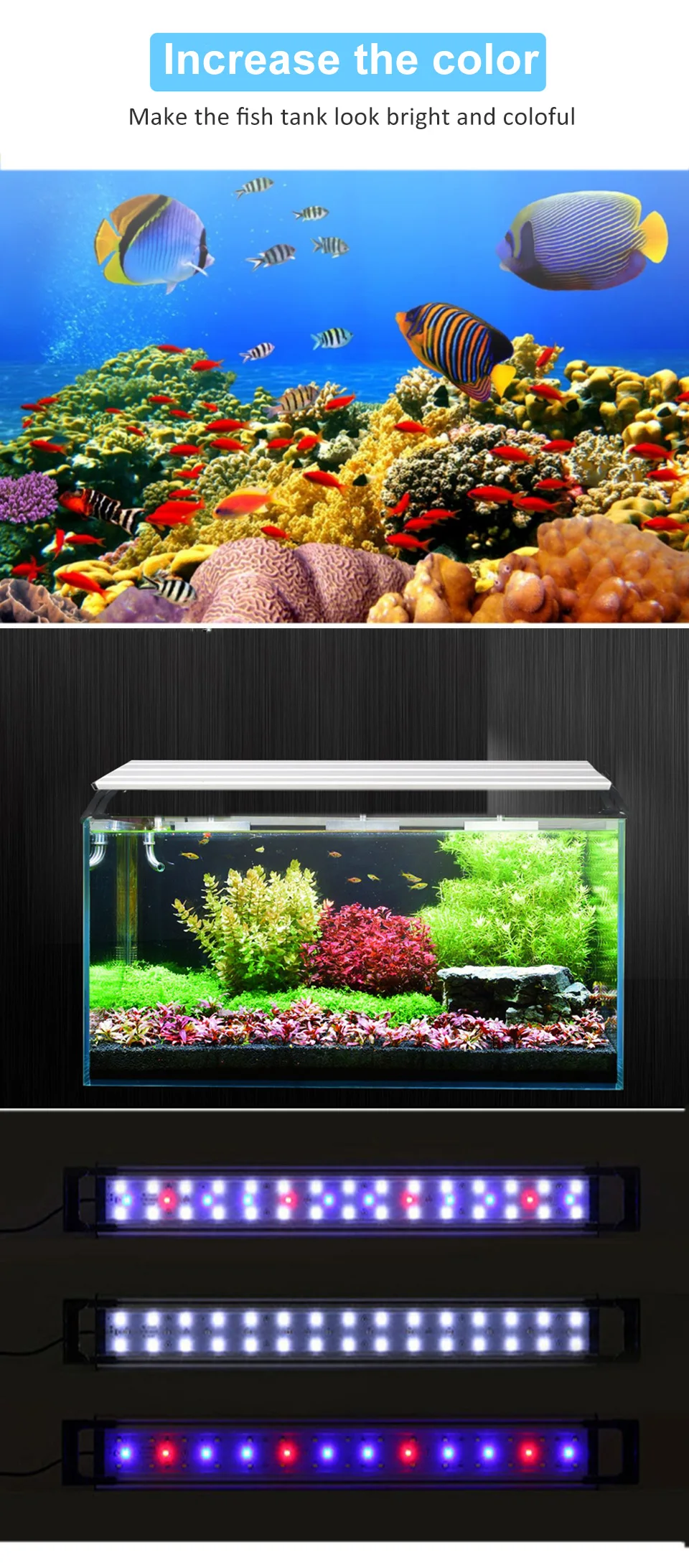 Modname = ckeditorОсобенности:-Телескопическая конструкция стержня, проще в использовании-Специальная конструкция источника питания, более Энергоэффективная-Алюминиевый корпус, улучшенная теплоотдача-Подходит для аквариума 20-25/30-35/35-40/45-50/60-65 смХарактеристики:-Разъем: США/ЕС-Светодиодный Тип: 5730smd-Мощность: 10/12/14/16W-Материал корпуса: алюминий-Светильник Длина: 20 Вт, 30 Вт/35/45/60 см-Светодиодный Количество: 24/33/39/42 светодиодный s-Цвет светильник: белый, синий, красный-Напряжение: 110 В (вилка стандарта США)/220 В (вилка европейского стандарта)-Светильник режим: белый только/синий и красный цвета/белого и синего цвета синий и красный цвета-Размер аквариума: 20-25/30-35/35-40/45-50/60-65 см* Почему освещение так важно для аквариумов? -Во-первых, достаточный светильник позволяет людям лучше смотреть на рыбу и растения в аквариуме. Достаточный светильник позволяет рыбам и растениям выглядеть более прозрачно и красиво.-Во-вторых, наиболее важный, правильный светильник может обеспечить интегральную энергию для рыб и растений. Светильник является основным фактором для любой живой системы, которая нуждается в фотосинтезе, такой как водоросли, анемоны и кораллы и другие Подводные живые растения.-В-третьих, правильный светильник также влияет на поведение и физиологию рыбы. Одним словом, правильный светильник является неотъемлемой частью общего здоровья всей аквариумной экосистемы.Посылка:1x Супер тонкая лампа для аквариума1x адаптерПримечание:1-этот товар не является водонепроницаемым, пожалуйста, держитесь подальше от воды и влаги2 -- этот светильник подходит для резервуаров длиной 20-25/30-35/35-40/45-50/60-65 см, пожалуйста, подтвердите длину вашего резервуара перед покупкой.3. Не прикасайтесь к трансформатору влажными руками4. Выключите питание перед очисткой лампы5. Рабочее напряжение должно быть совместимо с требованиями к напряжению трансформатора.