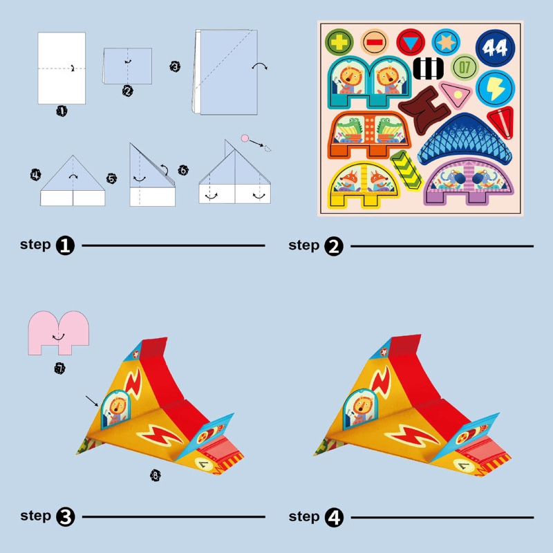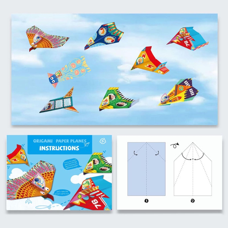 DIY ремесло складной бумажный самолет: поставляется с яркой и яркой цветной бумагой, пошаговая инструкция, чтобы направлять детей складывать прекрасные 3d бумажные игрушки, легко DIY даже для маленьких детей, режущая кромка чистая, чтобы обеспечить мастерство.