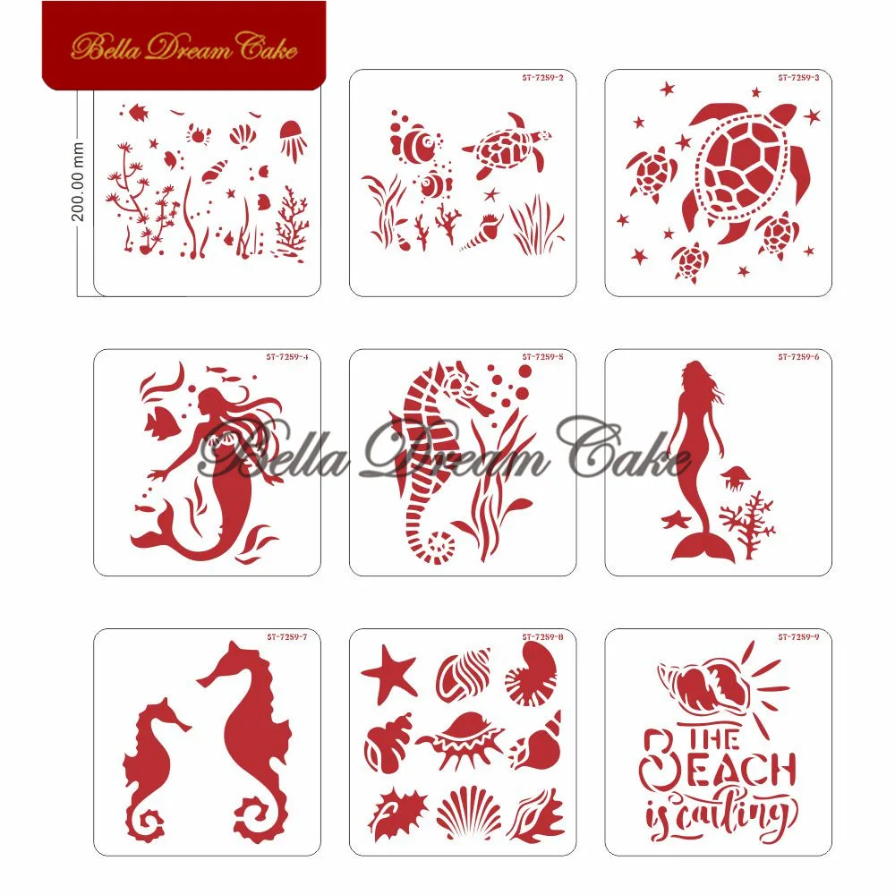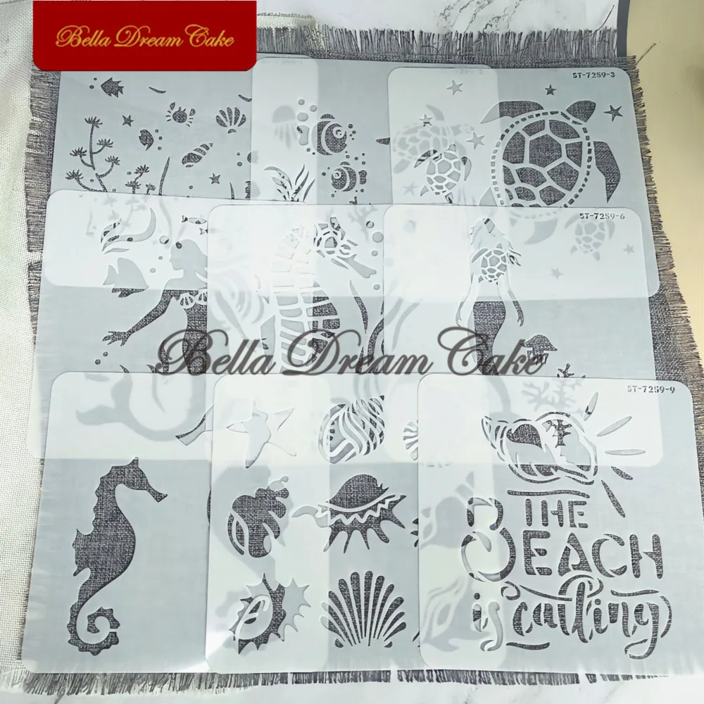 9 шт морская черепаха Русалка Шаблон трафарет для торта ПЭТ шоколадный торт границы шаблон королевская кремовая форма украшения торта инструменты для выпечки