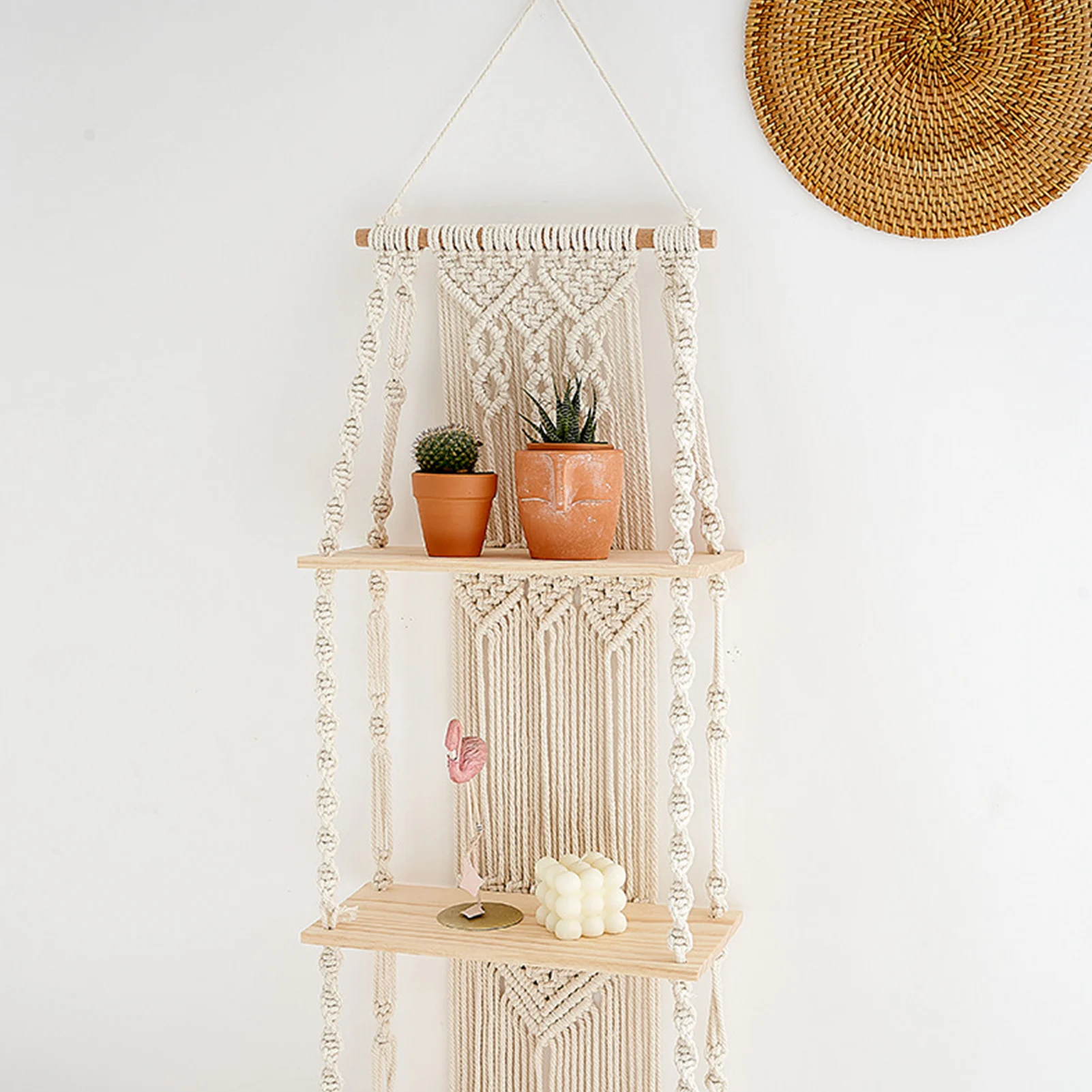 Настенная полка для макраме может отображать ваши любимые суккуленты, свечи, фоторамки, книги и личные коллекции и удовлетворить ваши другие общие бытовые потребности.