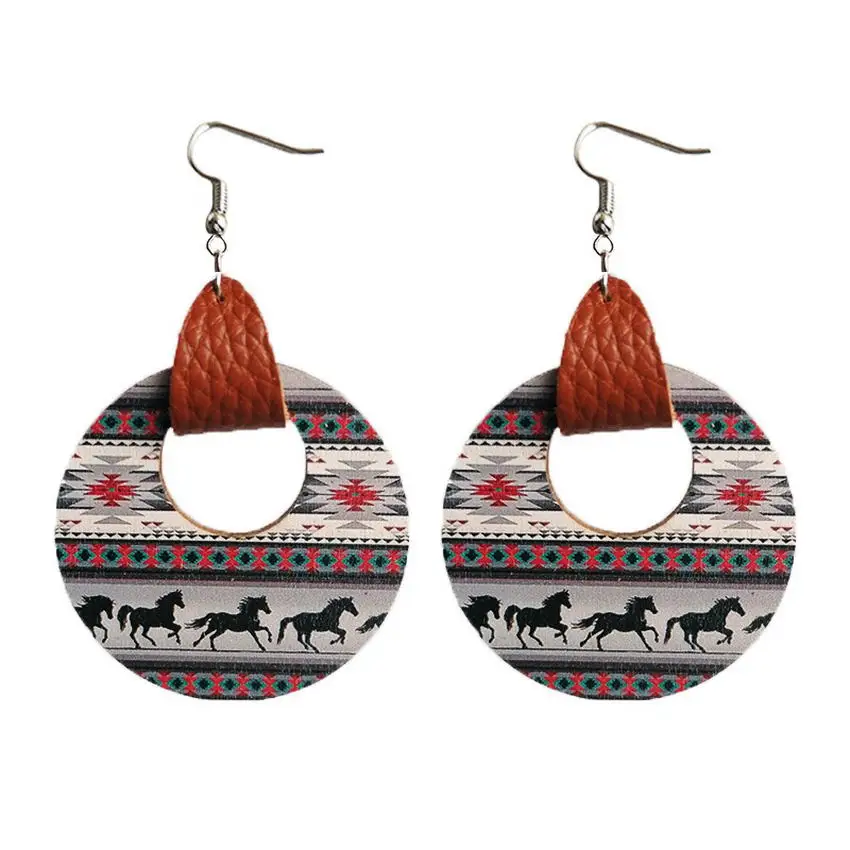 Женские круглые серьги-капельки из натуральной кожи в западном стиле с узором в виде коровы и лошади, новинка 2022 года, оптовая продажа