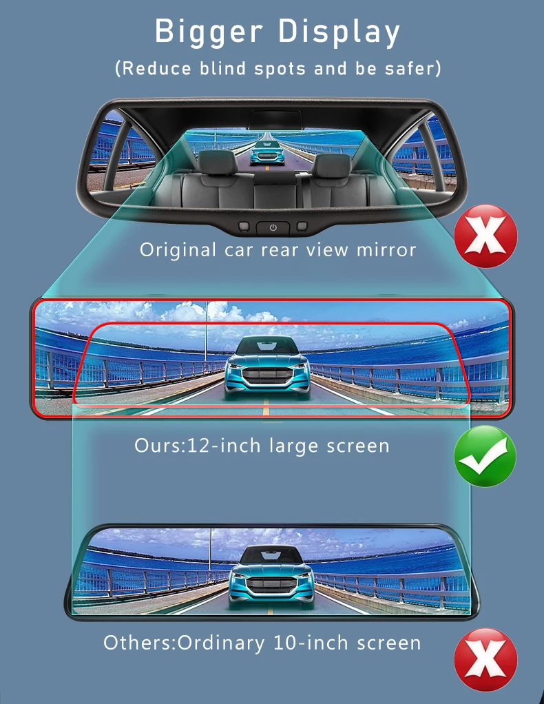 12-дюймовый full-view сенсорный экран с 2.5D из гнутого стекла зеркало. Четкие и гладкие изображения доставляются без задержек, и