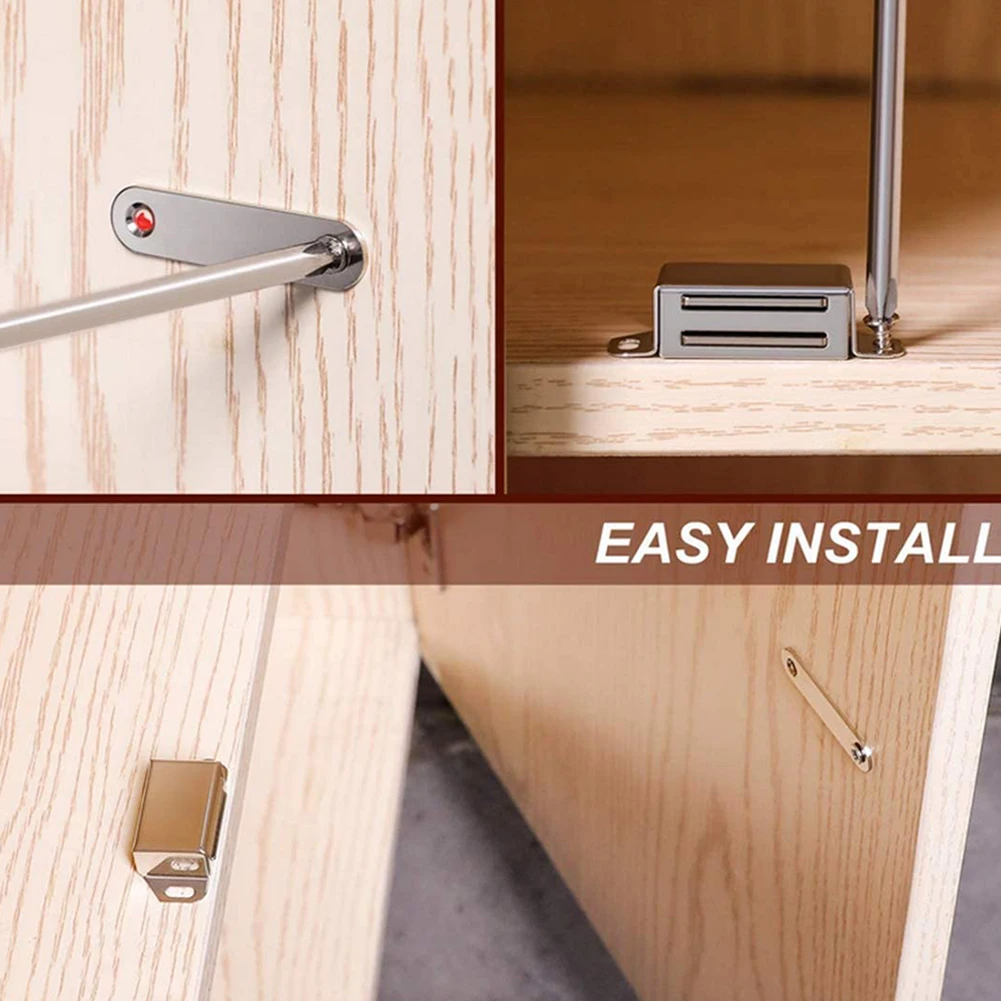 * Сверхмощная сила магнита 20 фунтов (10 кг): в каждом креплении находится один магнит с дополнительной сильной тягой, которая надежно закрывает тяжелую дверь или ворота. Хорошо подходит для использования на двери, в которой защелка бесполезна или не позволяет вашим питомцам или малышам открывать шкафы, ящики, раздвижные двери, экранные двери, стеклянные двери, французские и кладовые двери и т. д. Добавьте дополнительные элементы безопасности в ваш дом с помощью нашей надежной магнитной защелки.