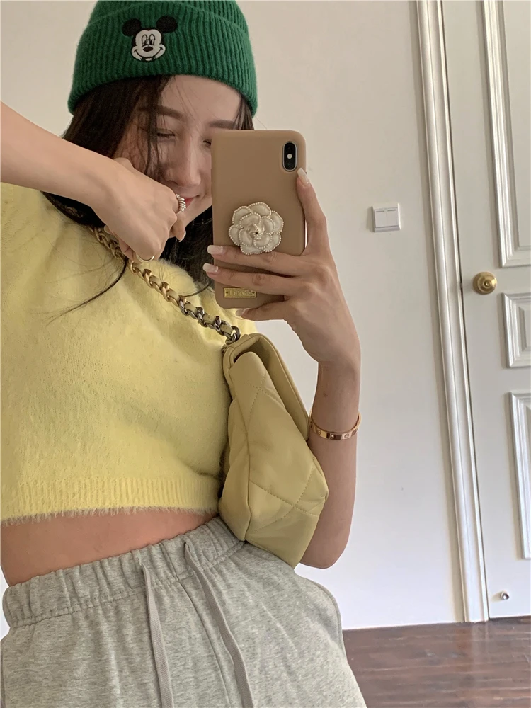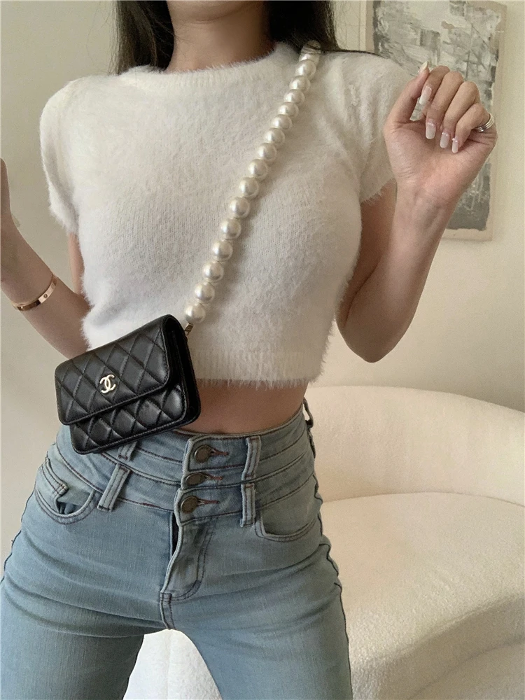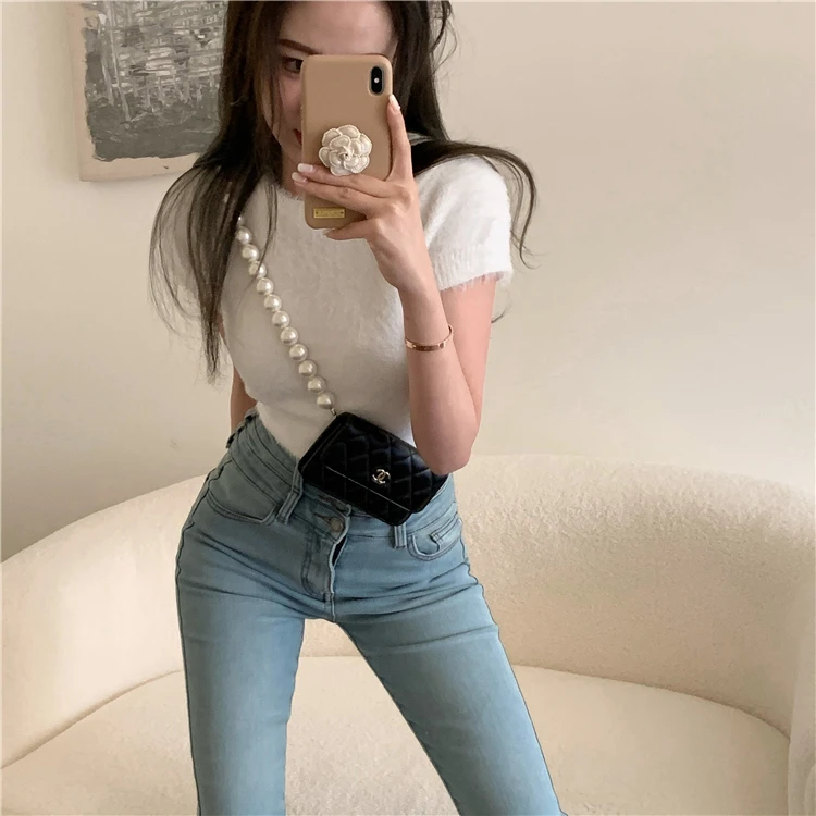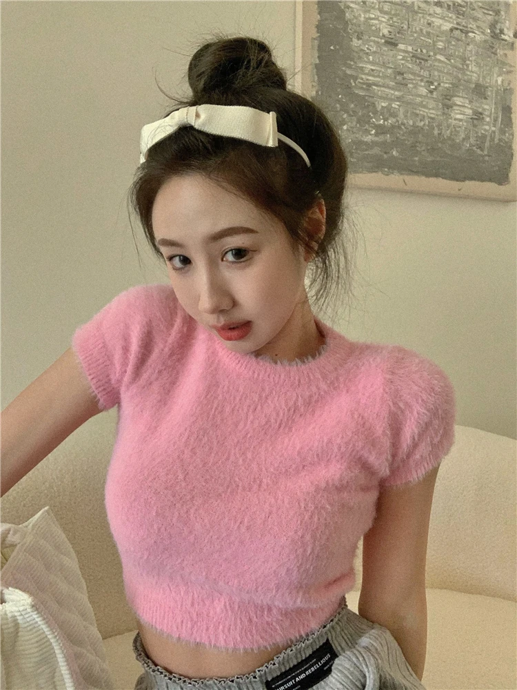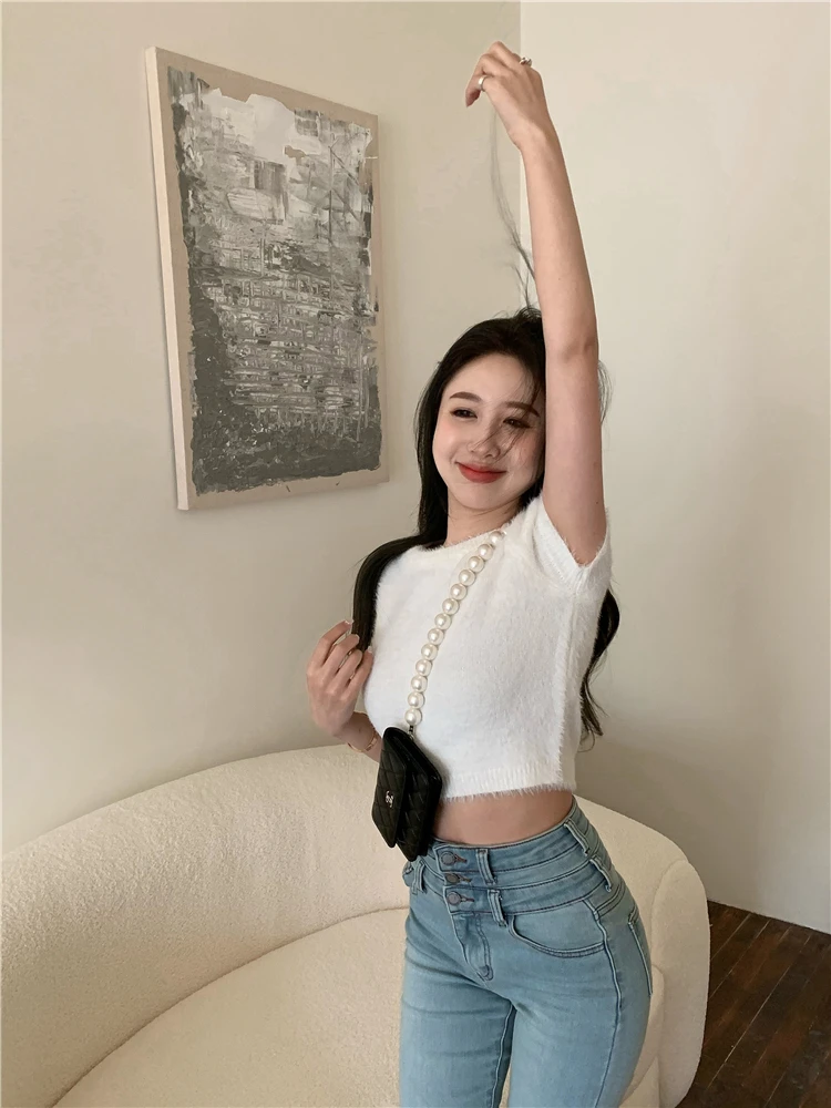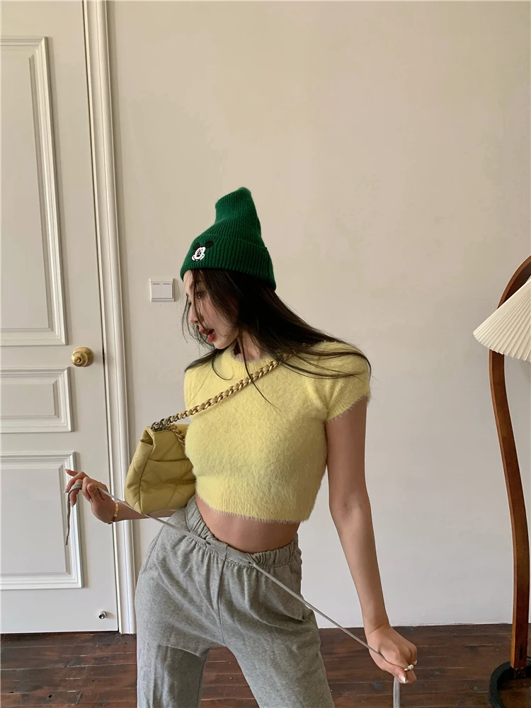 2022 летние мягкие трикотажные футболки с коротким рукавом в Корейском стиле 4 ярких цветов, женская футболка, женские укороченные топы